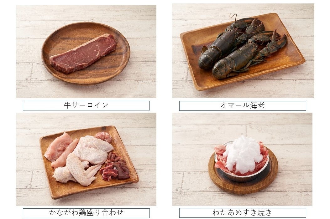 各プランともに「セレクション引換券」が付いており、引換券の枚数により、オマール海老やホタテなどの海鮮、牛サーロインや牛モモ、ラムチョップなどのお肉、その他ホイル焼きやおつまみなど約25種の食材・料理からお選びいただけます。