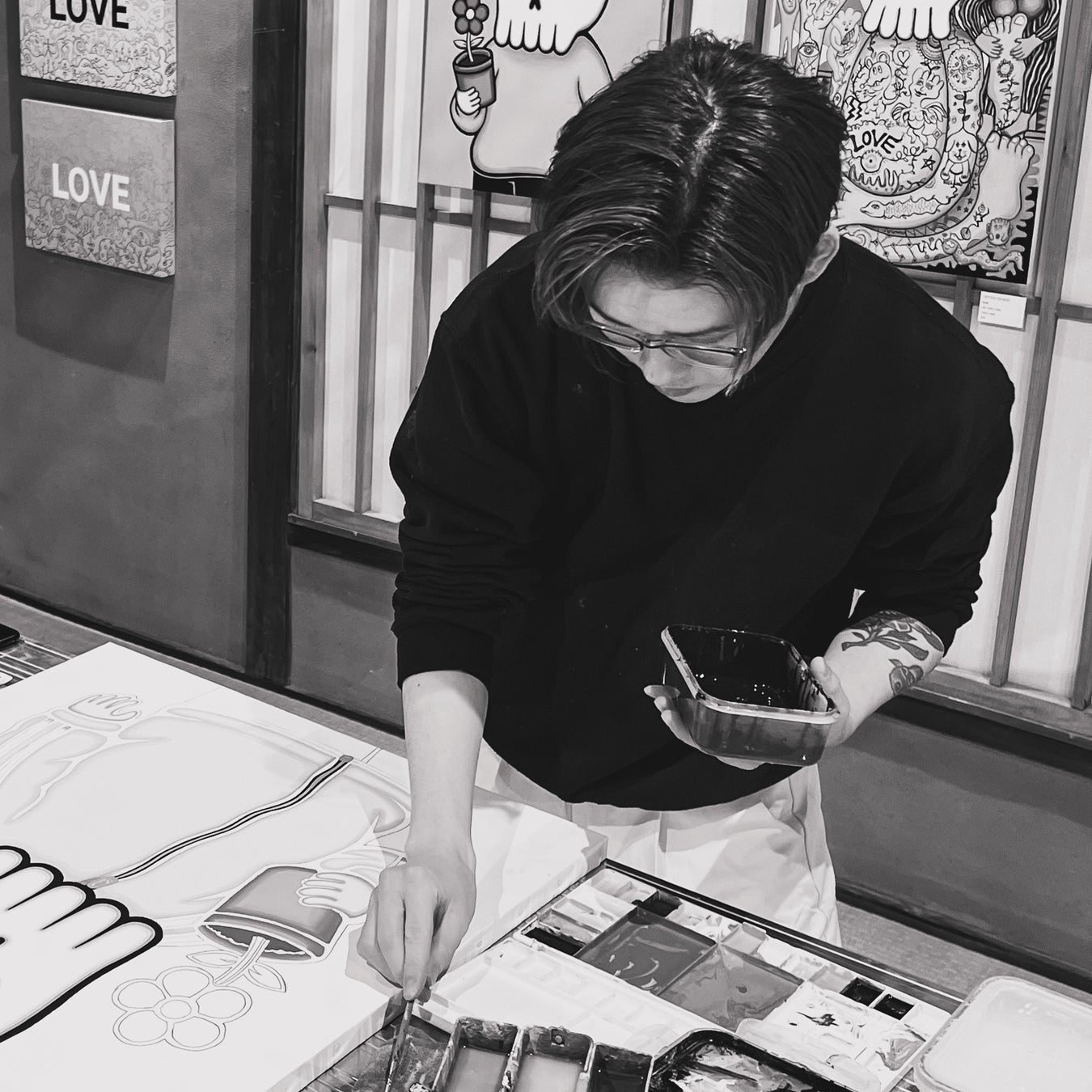 LOVEやHELLOという言葉の背景に様々な生き物たちが描かれている言葉シリーズ、生死感と向き合い制作を続ける中で生まれたキャラクター「ドクロくん」、幸せや祈りを命のバトンによって紡がれたことで誕生したキャラクター「ゴロ太郎」、そして80年代〜90年代に人々の大切な思い出を残したVHSより着想を得た新シリーズ「VHS」を本展にて発表いたします。