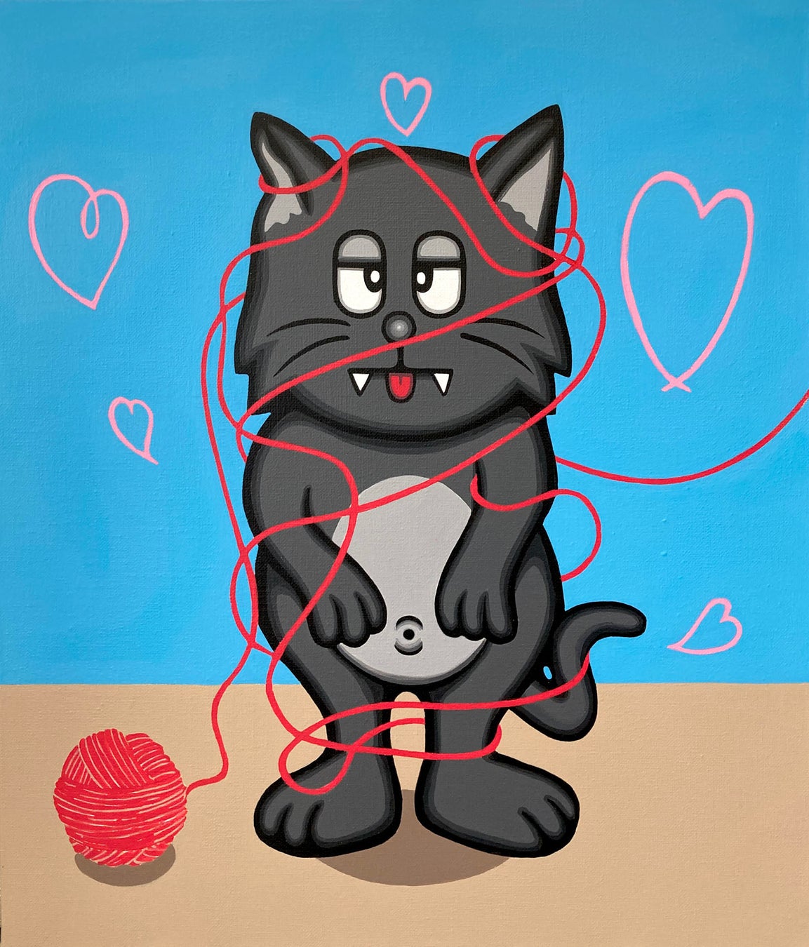 そして2022年、私が小学生の頃から飼っていた猫が亡くなりました。懸命に生き抜いた猫の命のバトンは、沢山の願いや祈り、あたたかな思いとともに今を生きる命へと繋いでいくという考えがある事を知りました。そんな中、地元宮城県で保護された猫がゴロ太郎でした。 実家で暮らす様になり新たな命のバトンを受け取りました。 人間も動物もみんなが幸せを感じながら、 共に生きられることを願って作品に登場してもらっています。