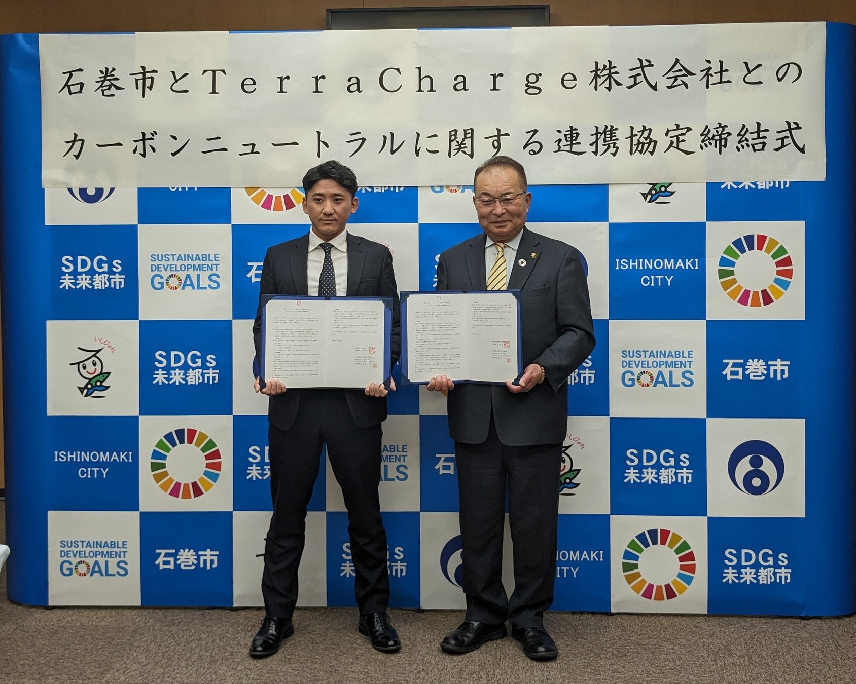 EV充電インフラ事業「Terra Charge(テラチャージ)」を展開するTerra Charge株式会社(本社:東京都港区、代表取締役社長:徳重徹、以下「当社」)は、宮城県の石巻市と、「石巻市とTerra Charge株式会社とのカーボンニュートラルに関する連携協定」を2024年3月21日に締結したことをお知らせします。