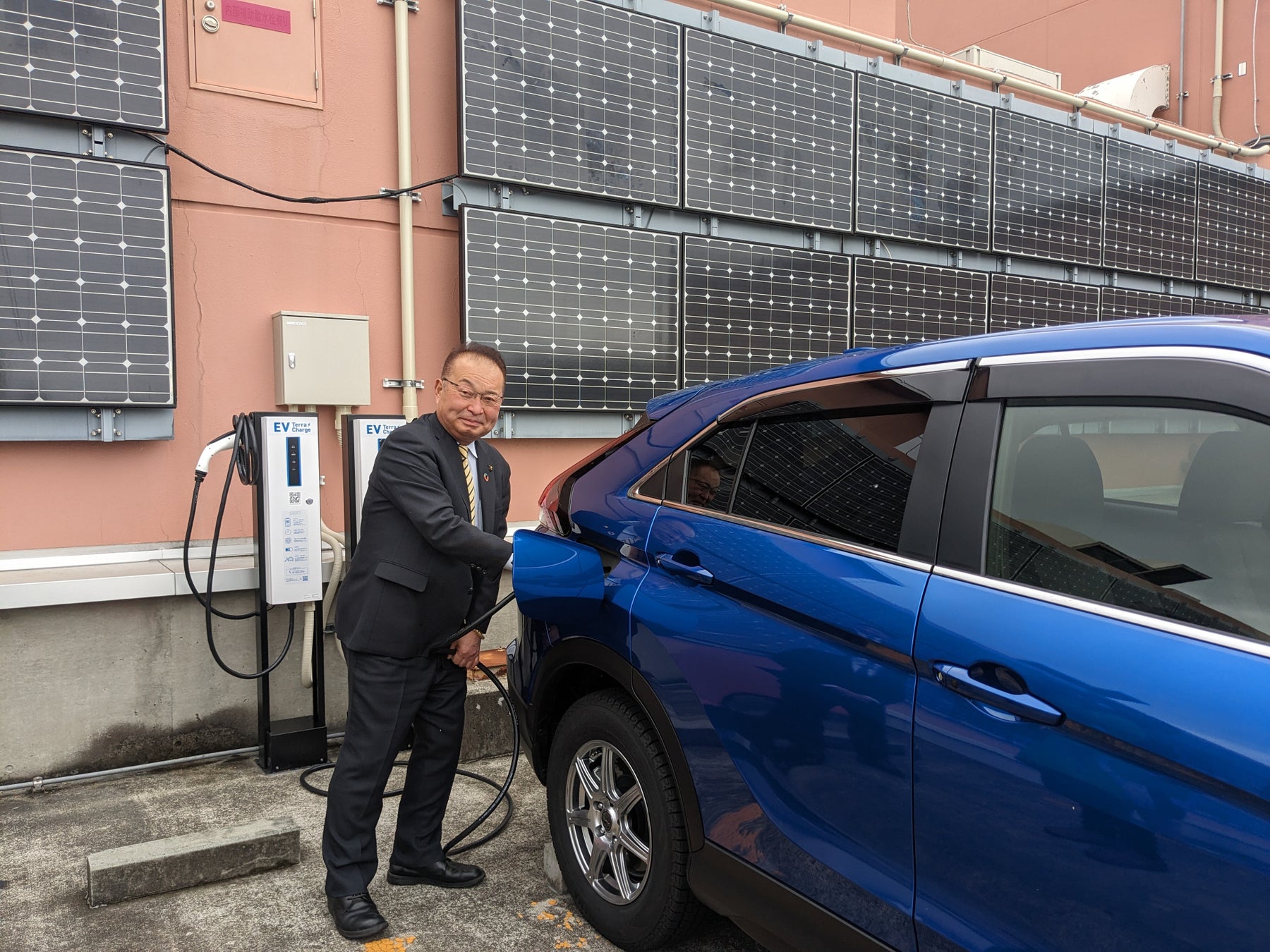 また、今回市内に設置したEV充電器は、EVを充電するだけでなく、災害時は無償開放することが可能です。EVには蓄電機能があり、災害が発生した際、まだ電気が復旧していない地域に充電したEVを走らせることで、電気を供給することができます。