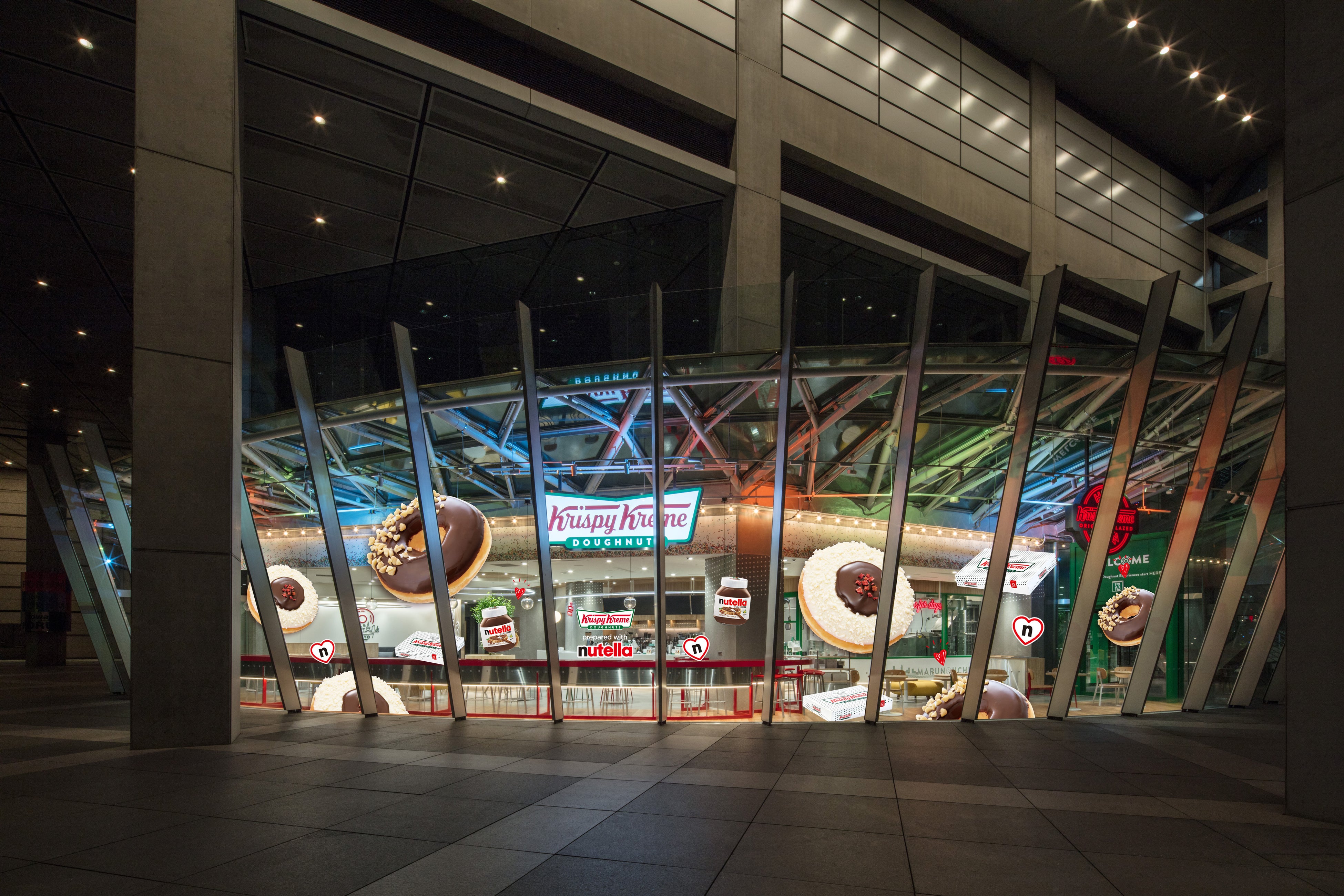 さらに、コラボレーション期間中は、クリスピー・クリーム・ドーナツ 東京国際フォーラム店が「ヌテラ®」の世界観に染まります。「ヌテラ®」のブランドカラーである赤と白を基調に、ヌテラ®の可愛らしいデザインが店内外各所に施され、フォトジェニックな空間に変身します。
