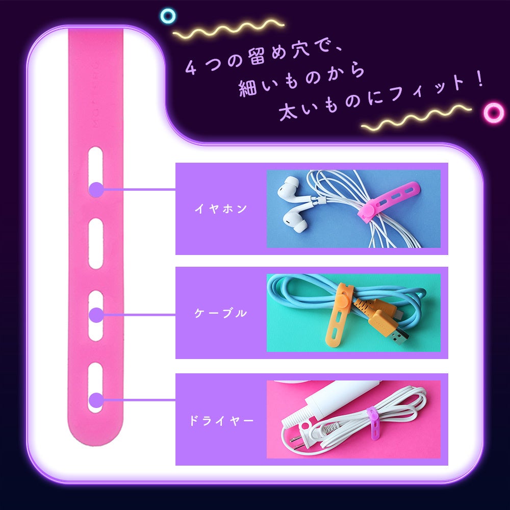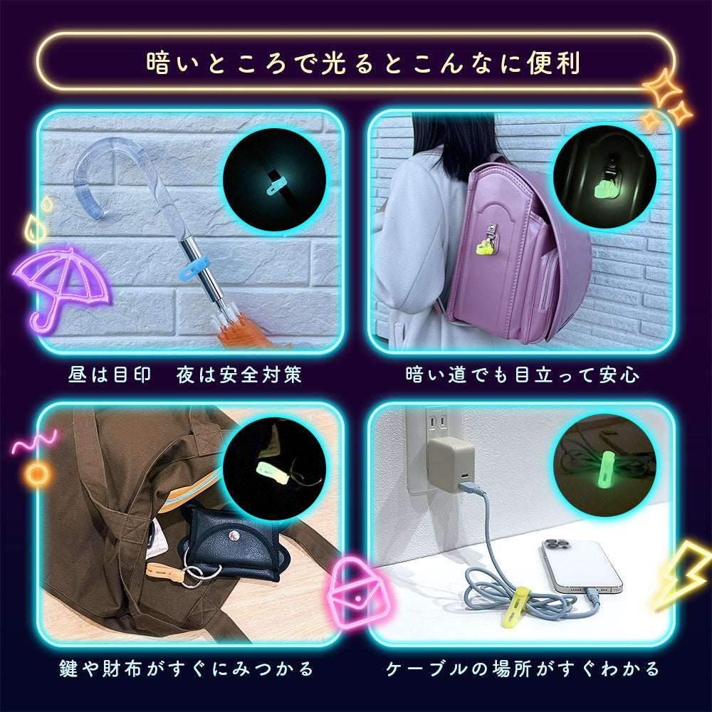 MOTTERU ピカッと目印!人気のシリコンケーブルバンドに暗闇で光る蓄光タイプが登場