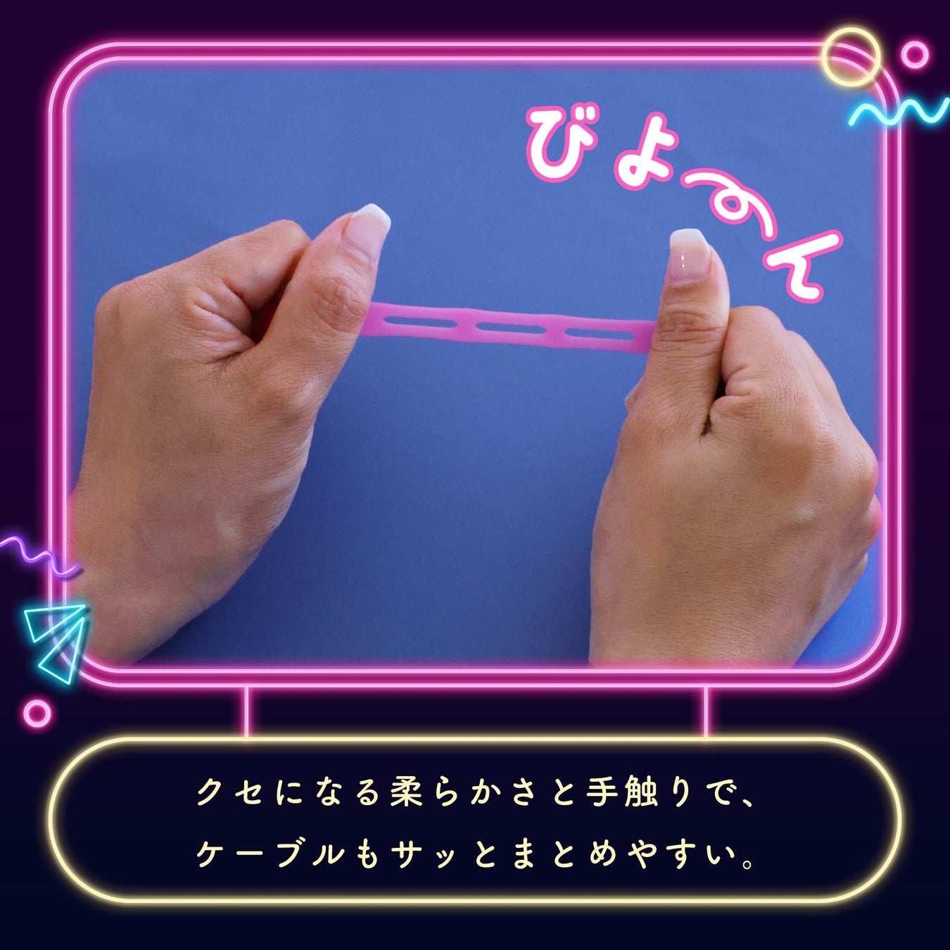すべすべとした手触りのよいシリコンで、びよんと柔らかく伸びます。