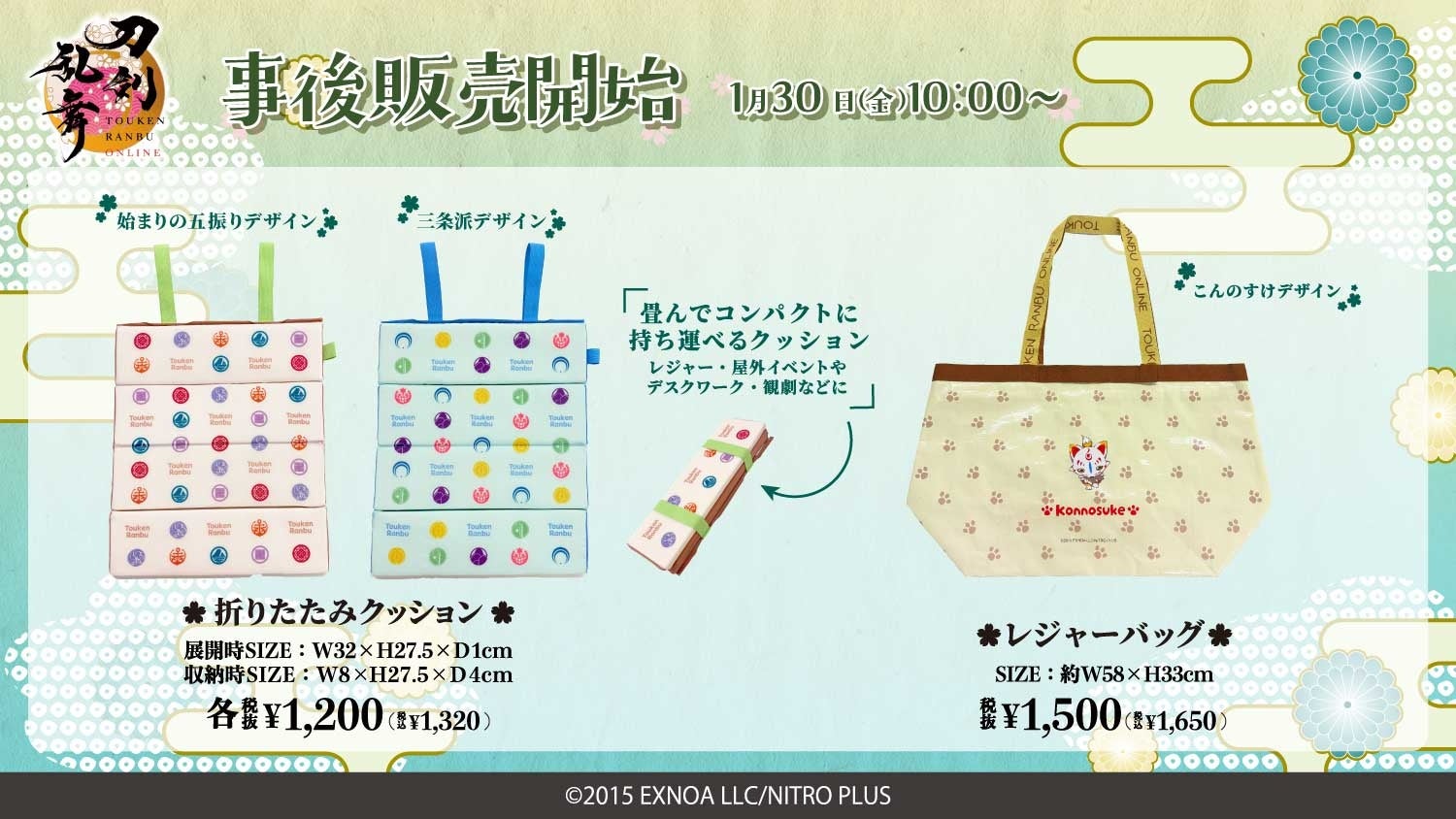 『刀剣乱舞ONLINE』のキャラクターやモチーフをあしらった、日常使いのできるアイテムをラインナップ。アウトドアなイベントにも、『刀剣乱舞ONLINE』のアイテムで素敵な時間を。
