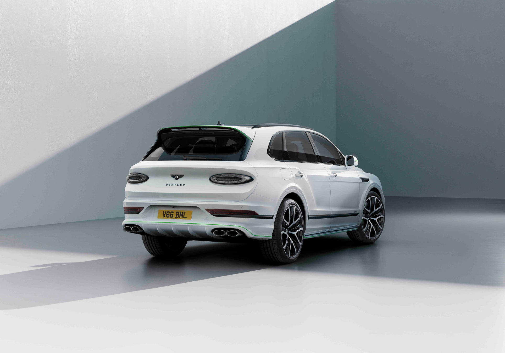 新型ベンテイガ スピード専用オプションとしてもうひとつ注目すべき点は、スピード・ブラックルーフです。ボディカラーに応じてグロスまたはサテン仕上げから選択可能となり、テールゲートスポイラー下部を含むこのブラックルーフが、強く自信に満ちたスタイルを際立たせています。