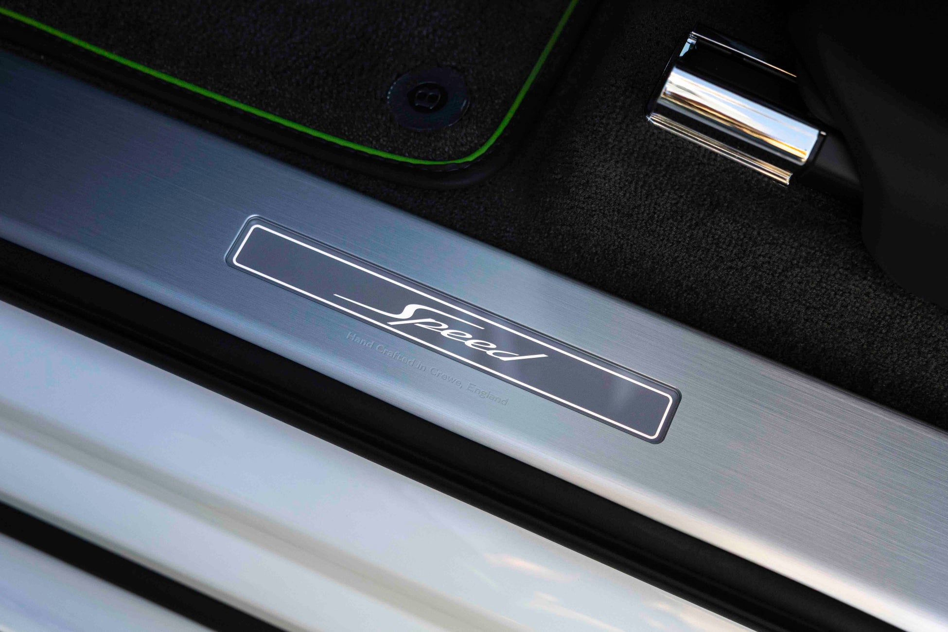 エクステリアは他のモデルとは一線を画す、印象的なデザインです。ダークティント仕上げのブライトウェアに加え、フロントドア前端にはクロームのSpeedバッジが輝き、22インチの専用ホイールはダークティントまたはシルバーから選択可能です。ヘッドランプにはスピード専用デザインが採用されており、内部構造とベゼルにダークティントを施すことで、より引き締まった表情を演出。テールランプも同様に、グレーのレンズとダークティントのベゼルが組み合わされ、リアビューに独自の存在感をもたらします。