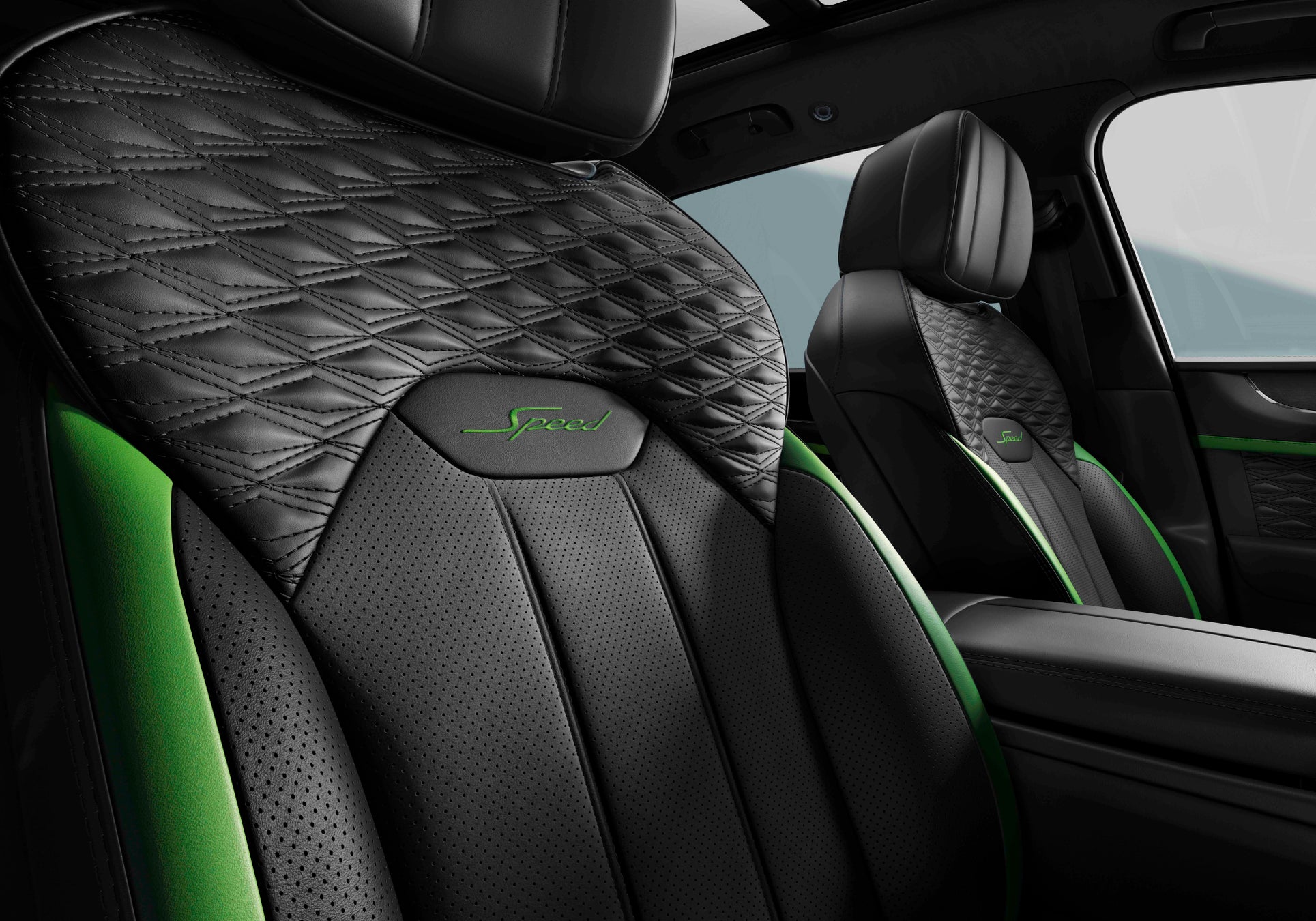 インテリアにはプレシジョン・ダイヤモンドキルトデザイン、ダークティント仕上げのエアベント、スピード専用バッジとカラースプリットを採用