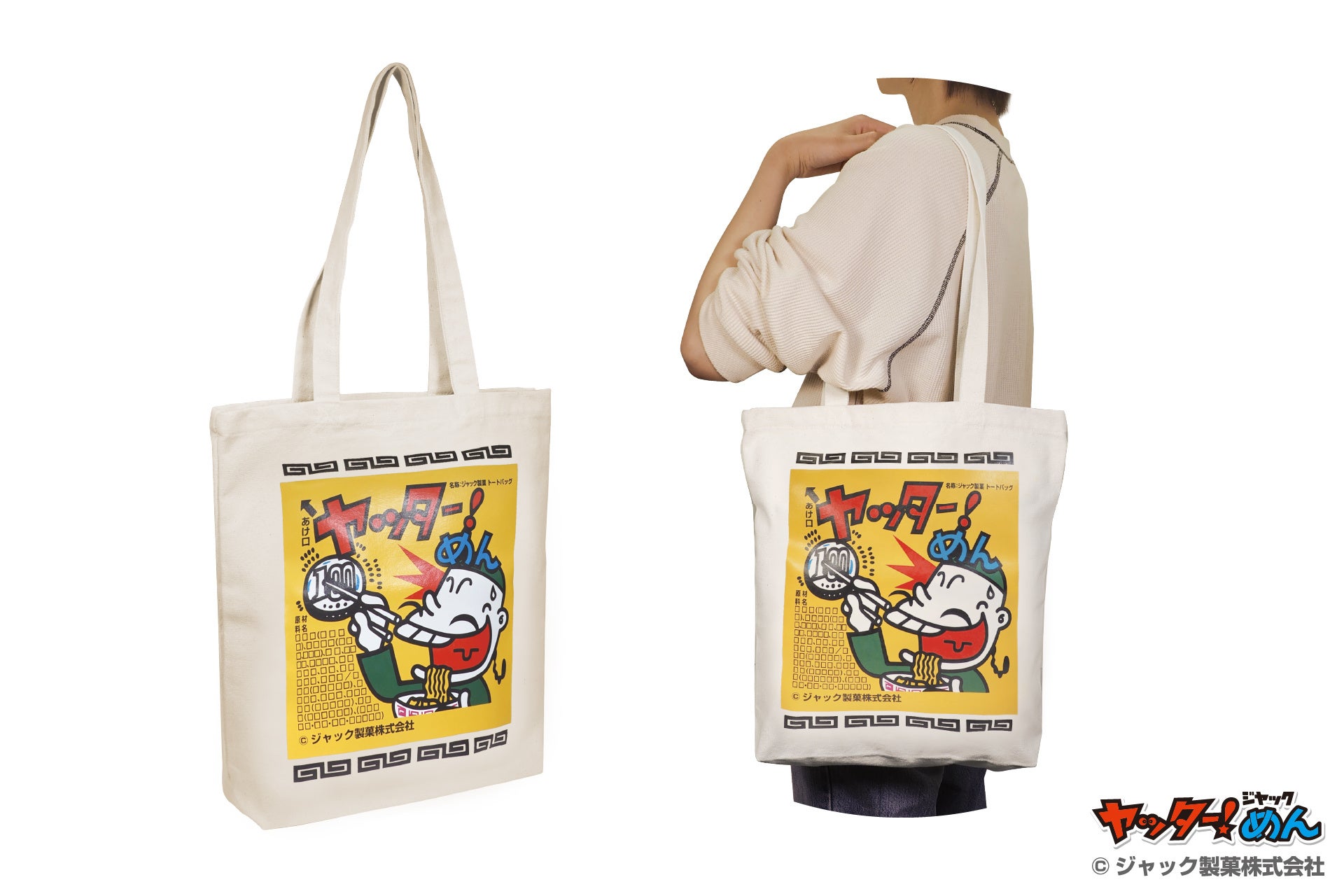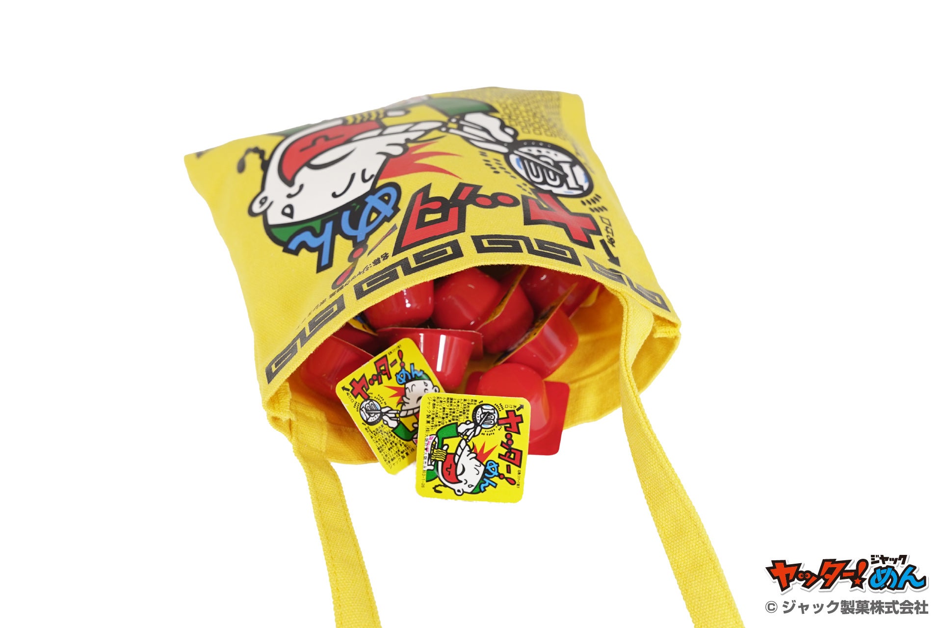 駄菓子屋さんでお馴染み「ヤッター!めん」デザインの「帆布トートバック」や「帆布ポシェット」誰もが一度は食べたことのある、その懐かしいデザインに注目されること間違いなし!