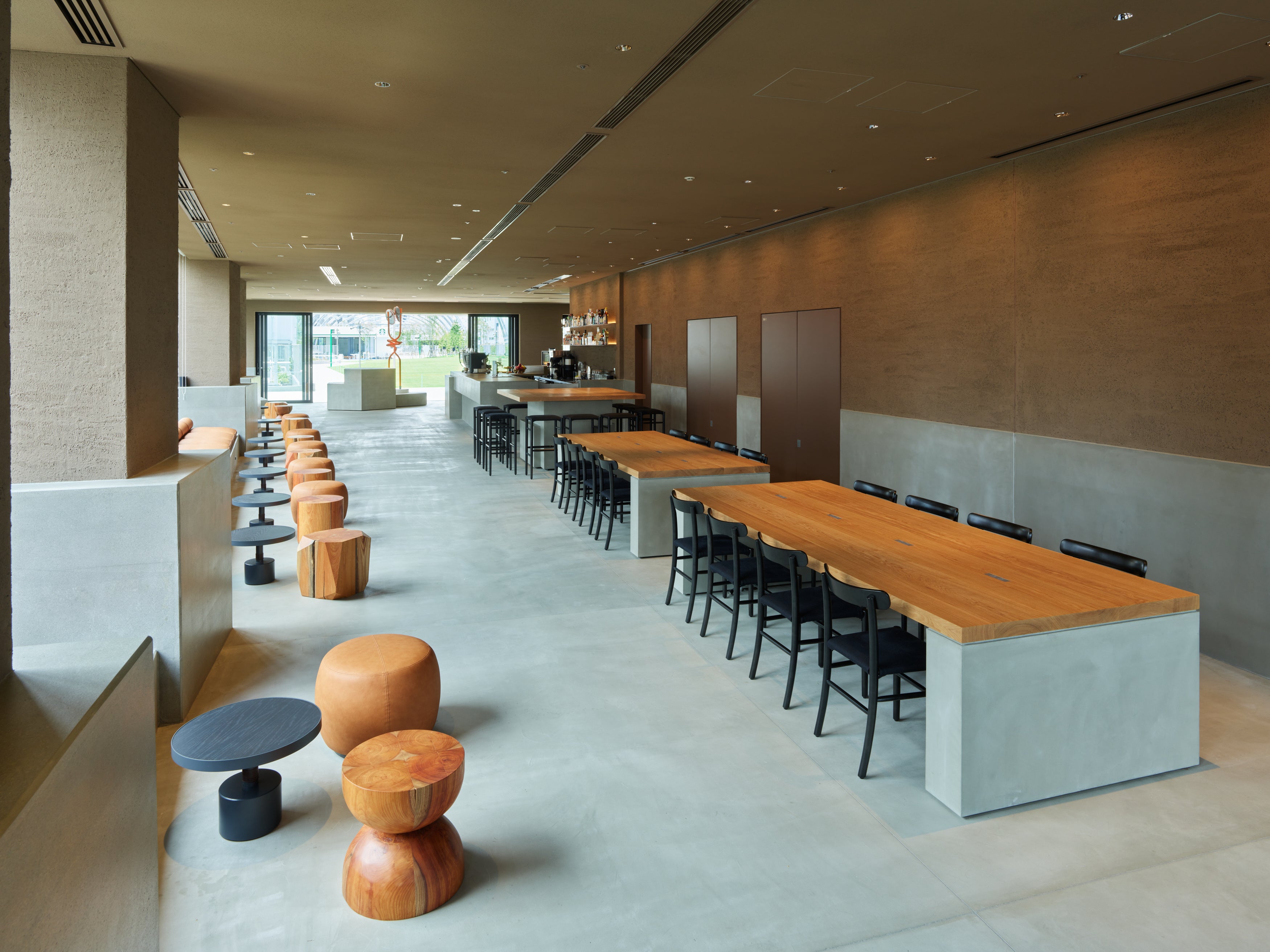 ・屋外とつながる開放的なカフェやレストラン、共用空間