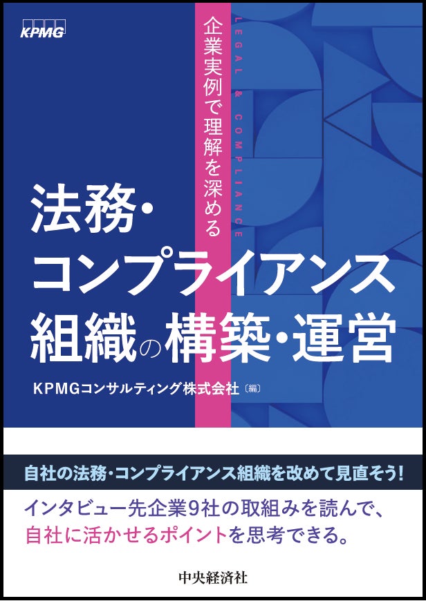 KPMGコンサルティング株式会社(本社:東京都千代田区、代表取締役社長 兼 CEO:宮原 正弘、以下、KPMGコンサルティング)は、書籍『企業実例で理解を深める 法務・コンプライアンス組織の構築・運営』を、株式会社中央経済社より発行しました。