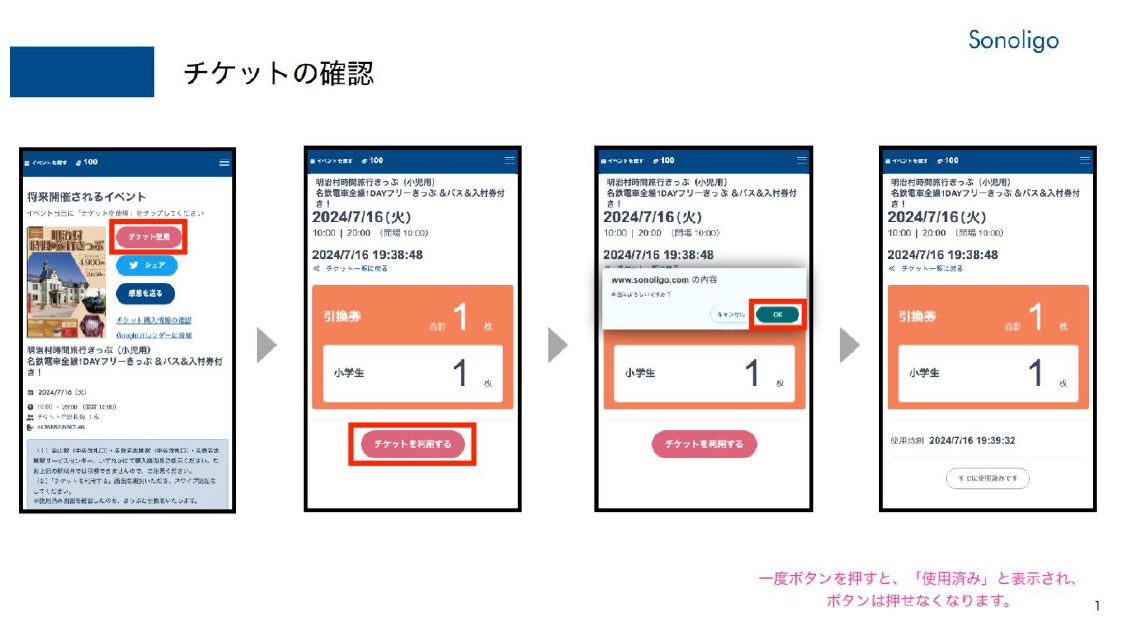 ※使用済み画面を確認したのち、きっぷと引換をします。