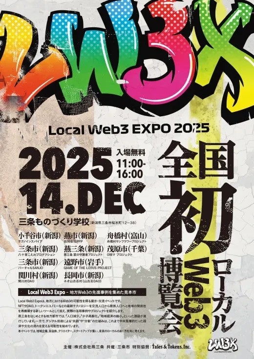 2025年12月14日(日)、新潟県三条市の「三条ものづくり学校」で開催される「Local Web3 Expo 2025」に、あるやうむが手がける地域おこし協力隊DAOから、新潟県・関川村DAOと富山県・舟橋村DAOが出展します。