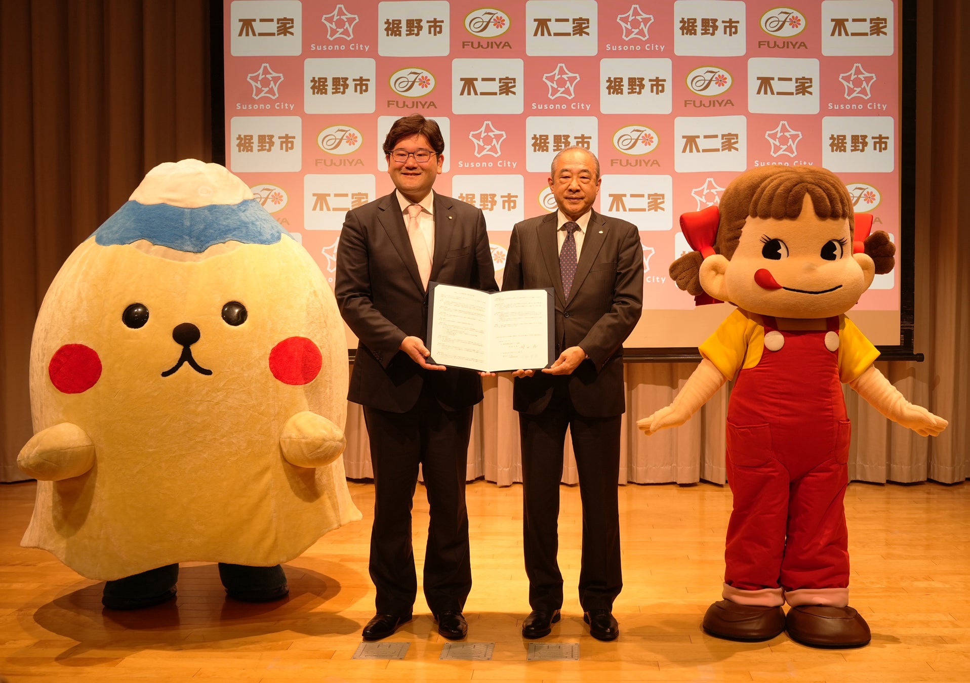この度の天然水ボトリング工場新設に伴い、当社は2024年11月18日(月)に工場所在地である静岡県裾野市と「災害時における物資供給に関する協定書」を締結します。この協定は、災害時において、当社と裾野市が相互に協力し、飲料水や菓子などの支援物資を被災地へ迅速に供給することを目的としています。