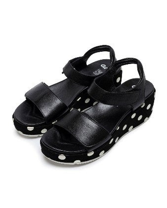 横顔で語る遊び心。ドットアクセントが印象的なウェッジサンダルが登場。ソールのサイドに施したチャーミングなドット柄が、歩くたびにさりげない楽しさを演出します。視線から少し離れた位置にポイントを置くことで、大人の余裕を感じさせるデザインに。アッパーはベーシックなブラックで全体を引き締め、どんな装いにもなじむバランスに仕上げました。2026年の“エレガンス回帰”に合わせたすっきりとしたシルエットと、araならではの安定した履き心地で、街歩きから休日まで軽やかに彩る一足です。