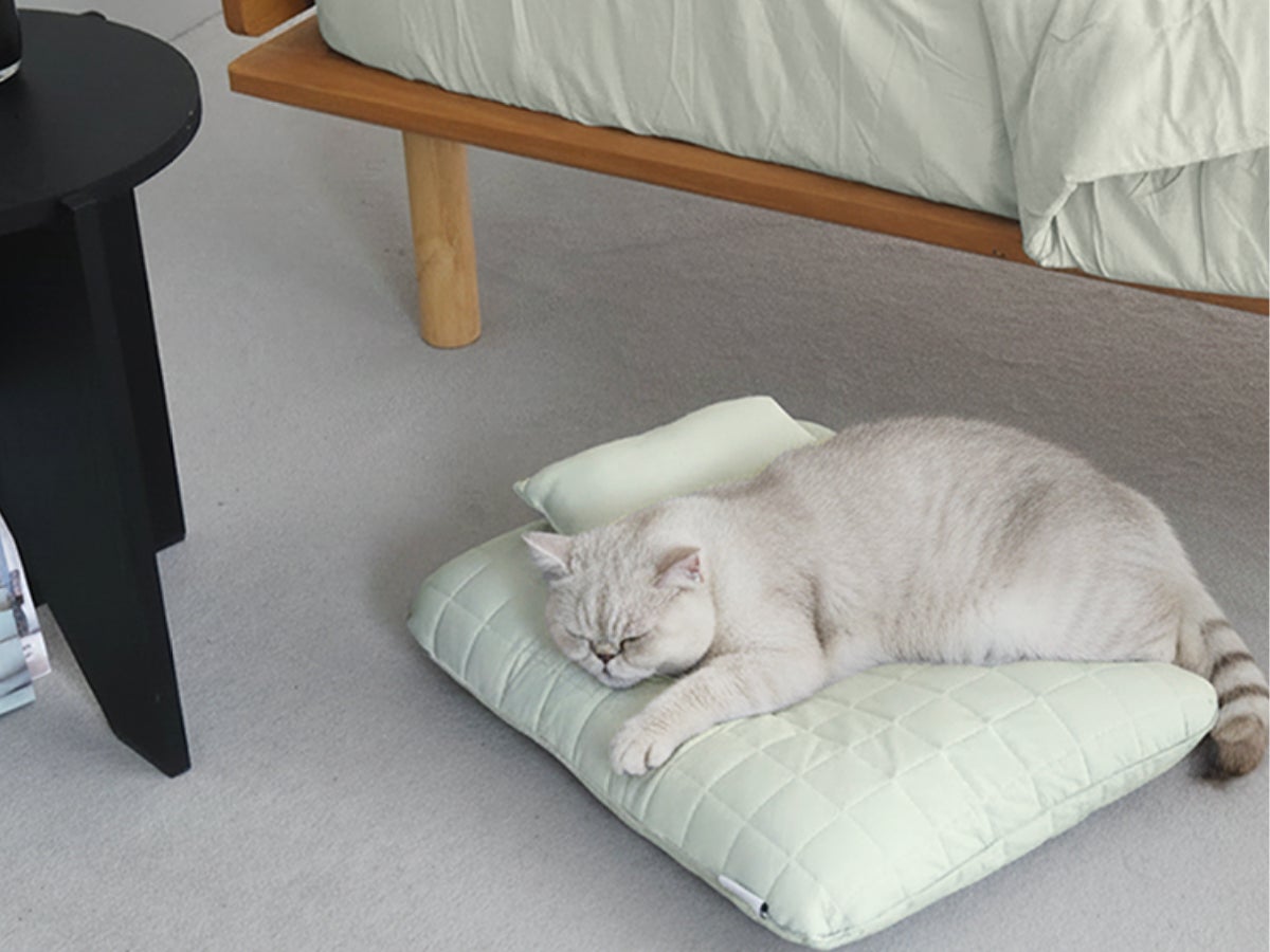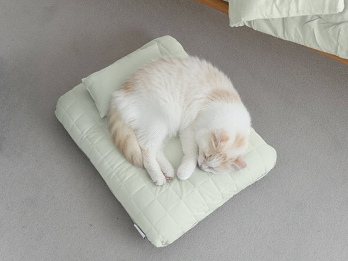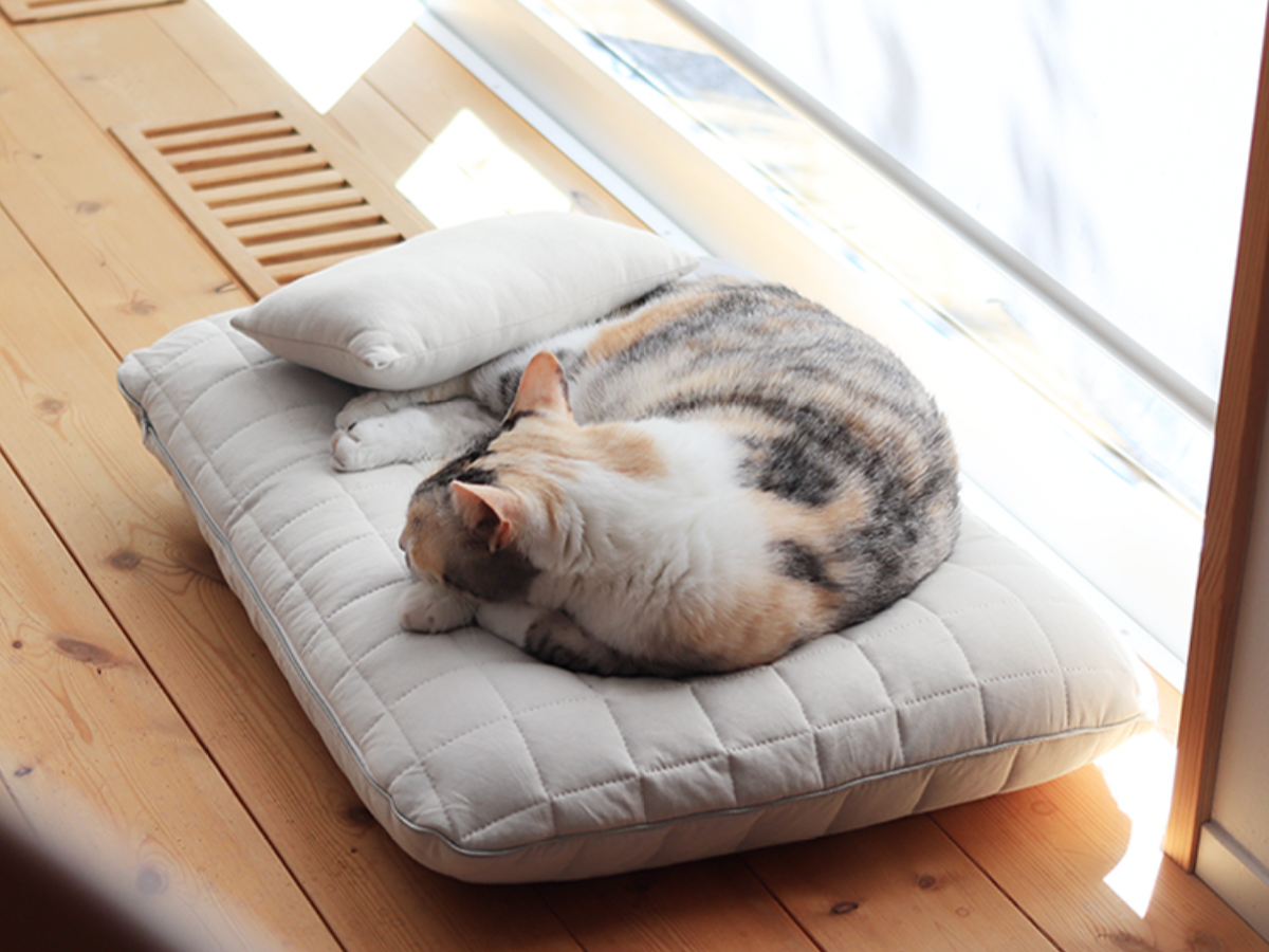 そこで、「bon moment」で人気のひんやり寝具シリーズ「ドライコットン」でペットベッドを企画。表地はサラッとしたコットン100%素材なのに、高い接触冷感機能でひんやり気持ちいい寝心地を叶えます。