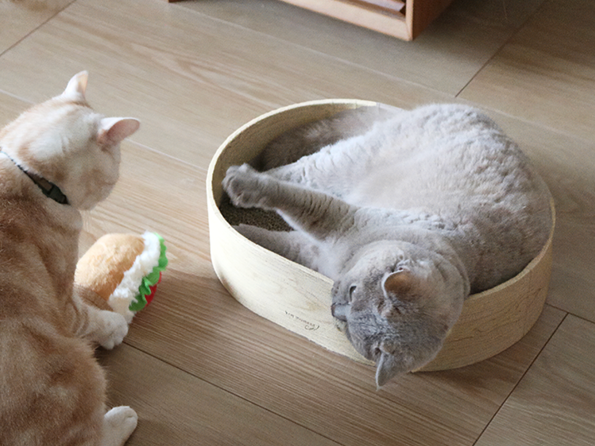 また爪とぎは高密度段ボール素材。研ぎカスが床に落ちにくいので、お掃除も楽々です。