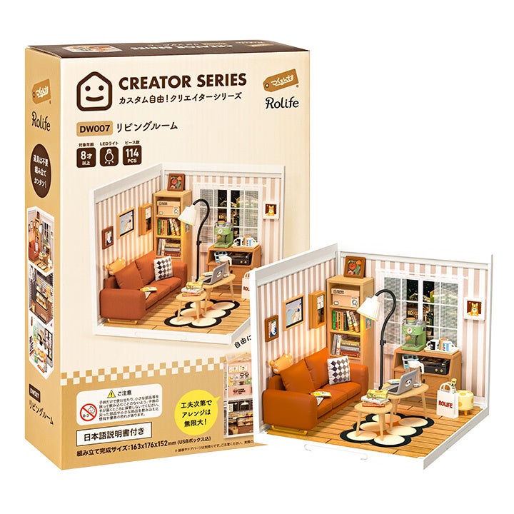 所要時間は約1時間、プラスチック製のパーツを組み立てていくだけで完成するため、初心者の方でも簡単につくることができます。また、クリエイターシリーズ(全7種)のハウス同士は連結可能で、縦横自由につなげて飾れます。フィギュアやカプセルトイの小物とも相性抜群なので、一緒に飾ったり、写真を撮ったり自由にお楽しみください。