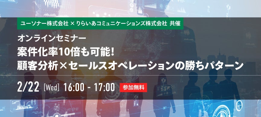りらいあ×ユーソナー 共催オンラインセミナー開催!「案件化率10倍も可能!顧客分析×セールスオペレーションの勝ちパターン」