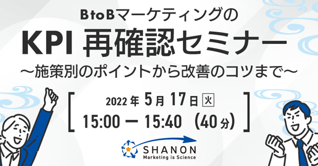 株式会社シャノン(本社:東京都港区、代表取締役社長:中村 健一郎)は、BtoBマーケティングの業務遂行に必要不可欠なKPI管理についてご紹介するウェビナーを5月17日(火)に開催します。