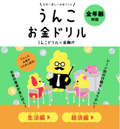 累計950万部を突破した「うんこドリル」シリーズの人気キャラ・うんこ先生や「うんこ」にまつわるシュールなイラストが登場する“笑いながら学べる動画”。金融庁YouTubeチャンネルにてご覧いただけます。