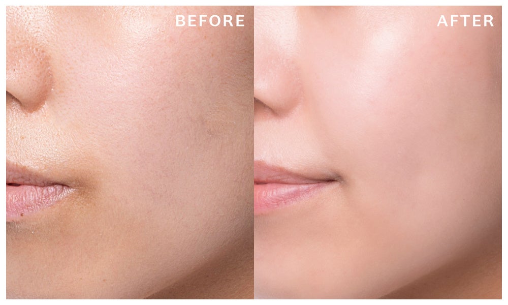 美容液テクスチャーに溶け込んだ繊細なグロウパールが肌に馴染むことで、 肌の内側から発光するようなみずみずしいツヤ肌に。 ファンデーションを重ねても上品なツヤ仕上がりが続きます。