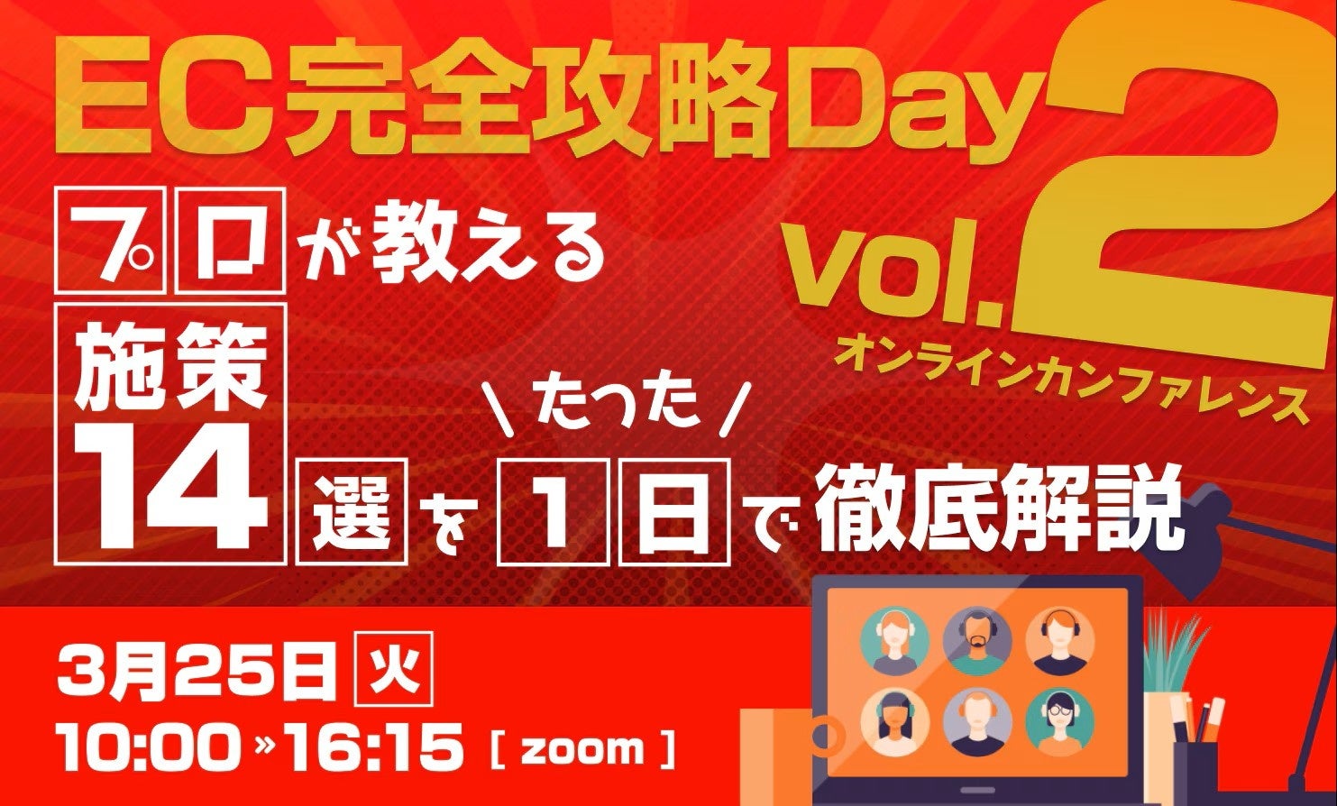 本カンファレンスは、EC業界を牽引するトッププロが集まり、厳選した成功施策14選を1日で徹底解説いたします。2025年EC業界最大級のオンラインカンファレンスとなっておりますので、EC事業者の方はぜひお申込みくださいませ。