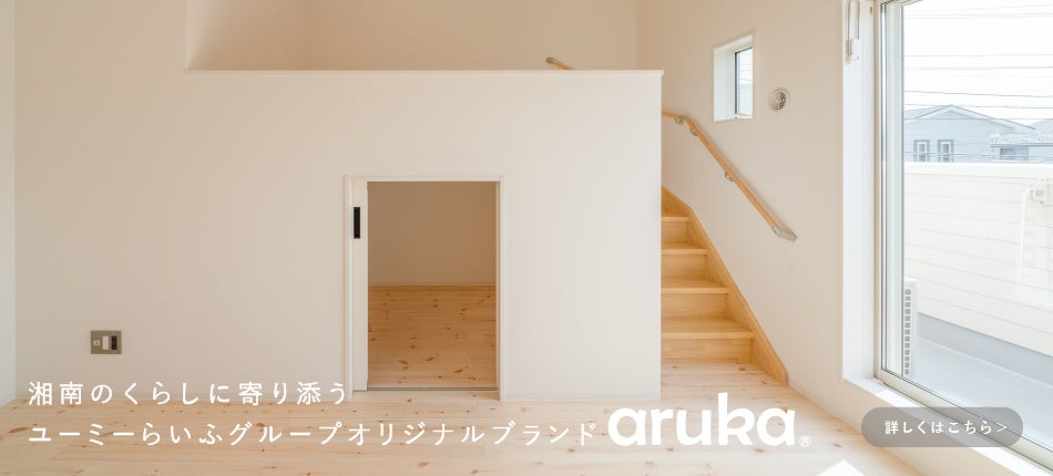 自社ブランドとして展開している、湘南のくらしに寄り添うお部屋ブランド「aruka」もご紹介しています。