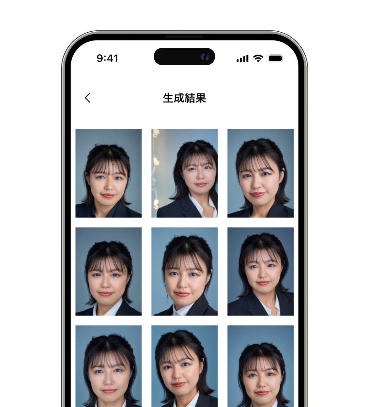 AIにより、スマートフォンで簡単に証明写真が作成できます。
