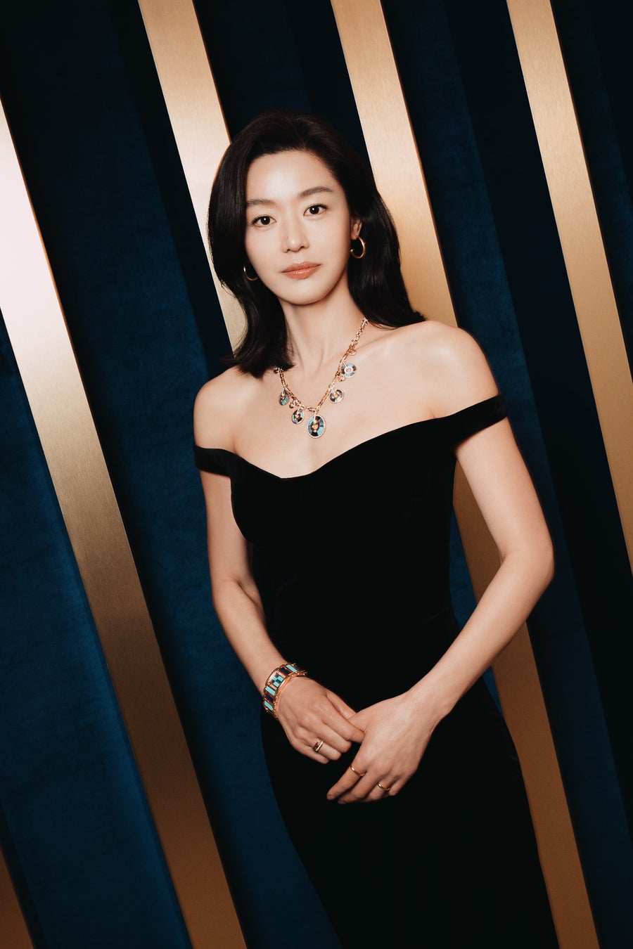 グローバルアンバサダーのチョン・ジヒョンは、新作「ポセション バイブラント パレス」をまとい、その場の視線を独占しました。大胆なフェミニニティと色彩へのオマージュを体現し、マグネティックなブルーと鮮やかなデコ パレス(パレス装飾)が放つ輝きを印象的に際立たせました。