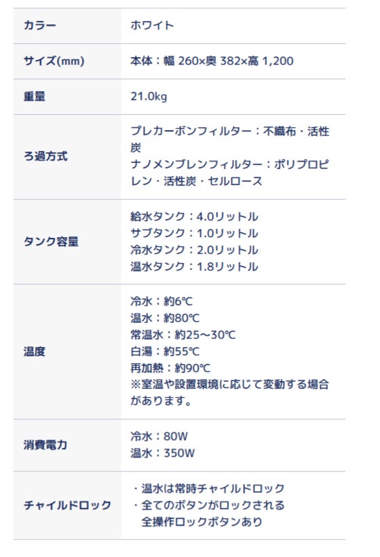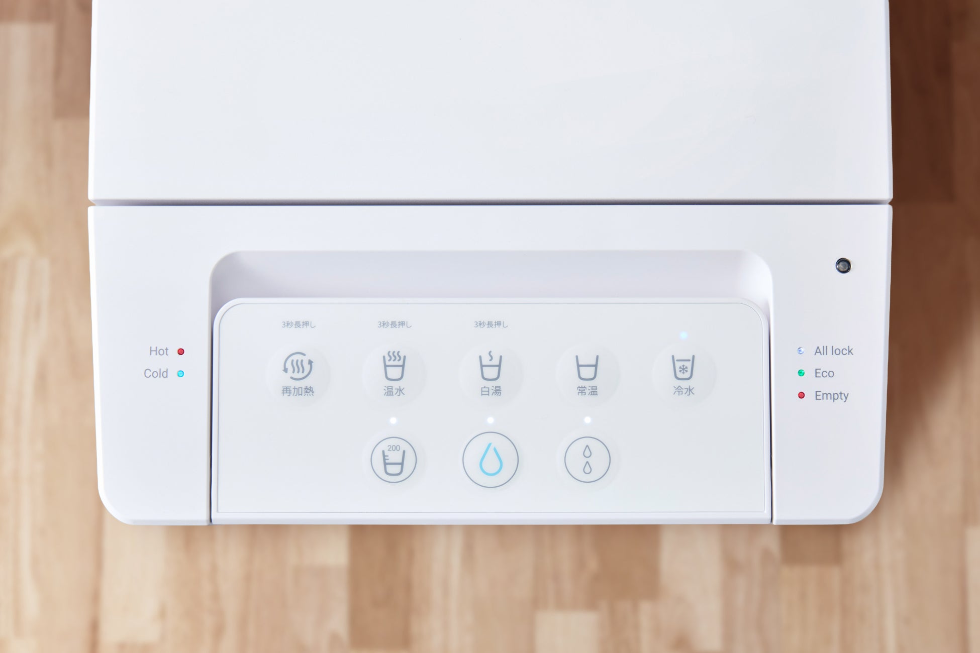 常温水や白湯などの5種類の「温度帯」と3種類の「出水量」が自由に選べ、幅広く使える利便性を実現。ALL LOCK機能を使うと操作パネルボタンがロックされ、誤出水等も防止できる安心設計です。