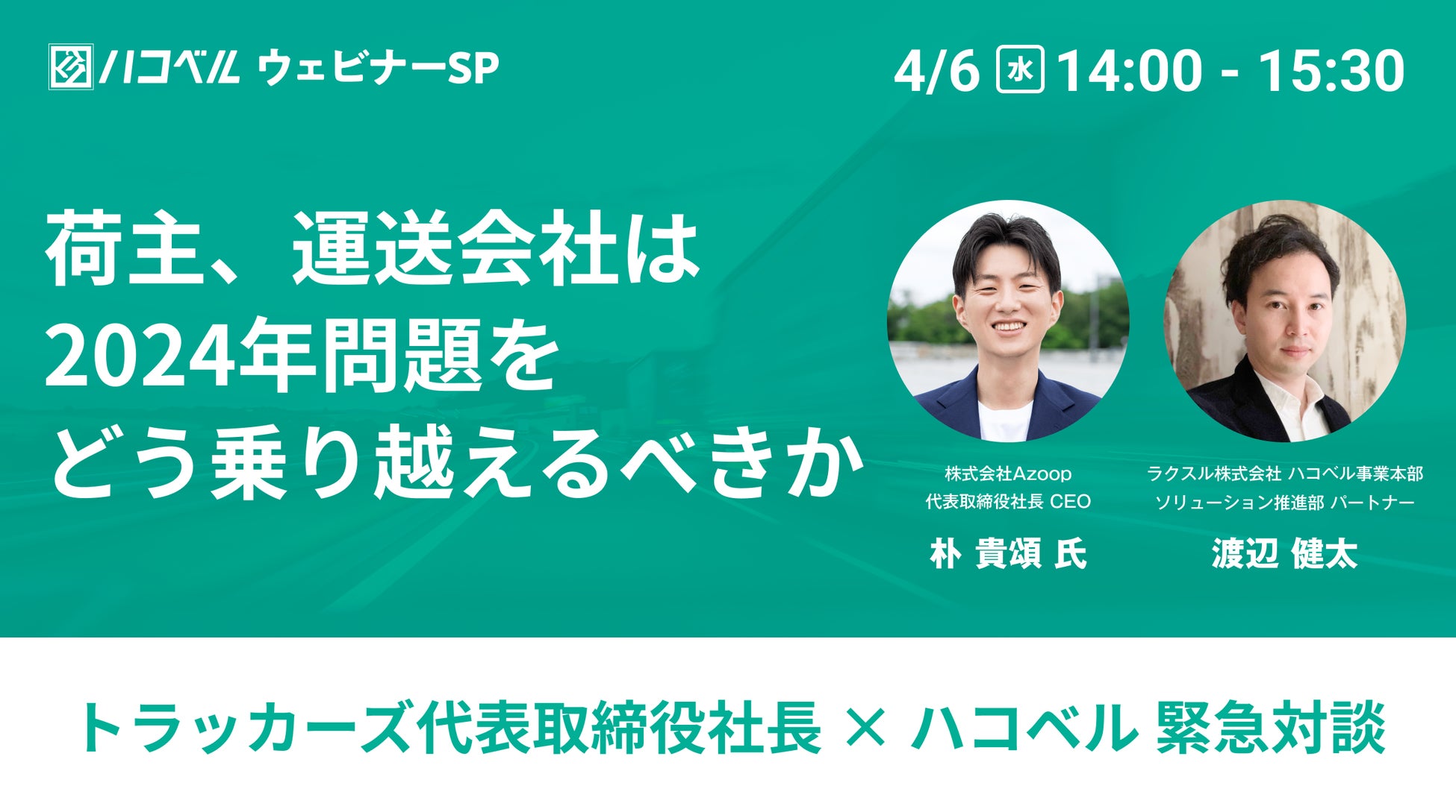 【4月6日(水)ハコベルウェビナー開催】トラッカーズマネージャー×ハコベル緊急対談 荷主、運送会社は2024年問題をどう乗り越えるべきか