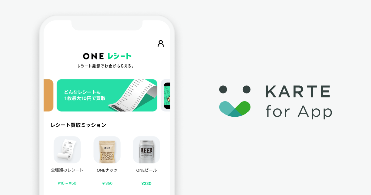 株式会社プレイド(東京都中央区:代表取締役CEO 倉橋健太、以下「プレイド」とする)の提供するCXプラットフォーム「KARTE」のアプリ版「KARTE for App」が、WED株式会社(東京都渋谷区:代表取締役CEO 山内 奏人、以下「WED」とする)の提供するお金がもらえるお買い物アプリ「ONE」に導入されたことをお知らせします。世の中になかった体験価値を創造し、グローバルに通用するサービスを目指す同社のアプリグロース戦略とレシート買取によって集まる膨大なデータの活用を、当社のKARTE for AppをはじめとしたKARTEシリーズとカスタマーサクセスが伴走支援します。