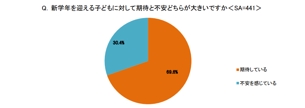 1.新学年を迎える子どもに対して不安よりも期待を抱く親が約7割で圧倒的に!