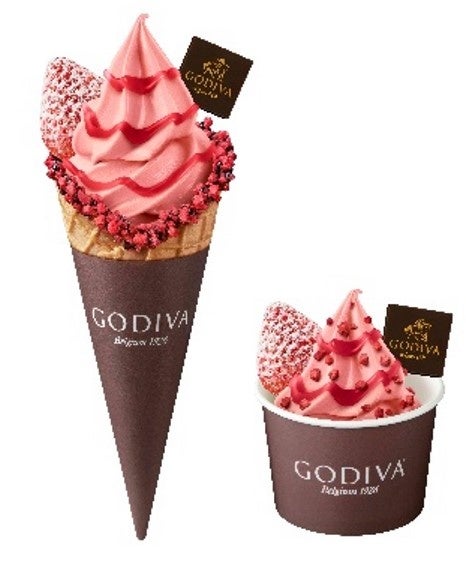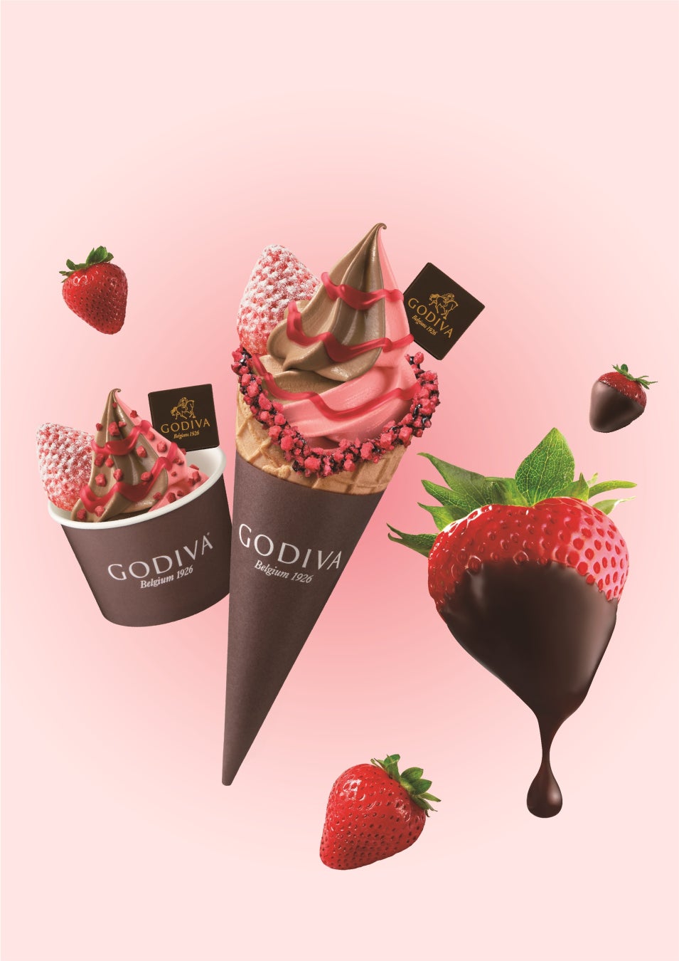 バレンタイン催事場限定!「ゴディバ ソフトクリーム ストロベリー&あまおう苺」などソフトクリーム全6フレーバーおよび「ストロベリーディップ」登場