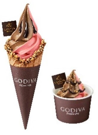 ゴディバ ソフトクリーム ダブルチョコレート&あまおう苺 コーン/ カップ 600円