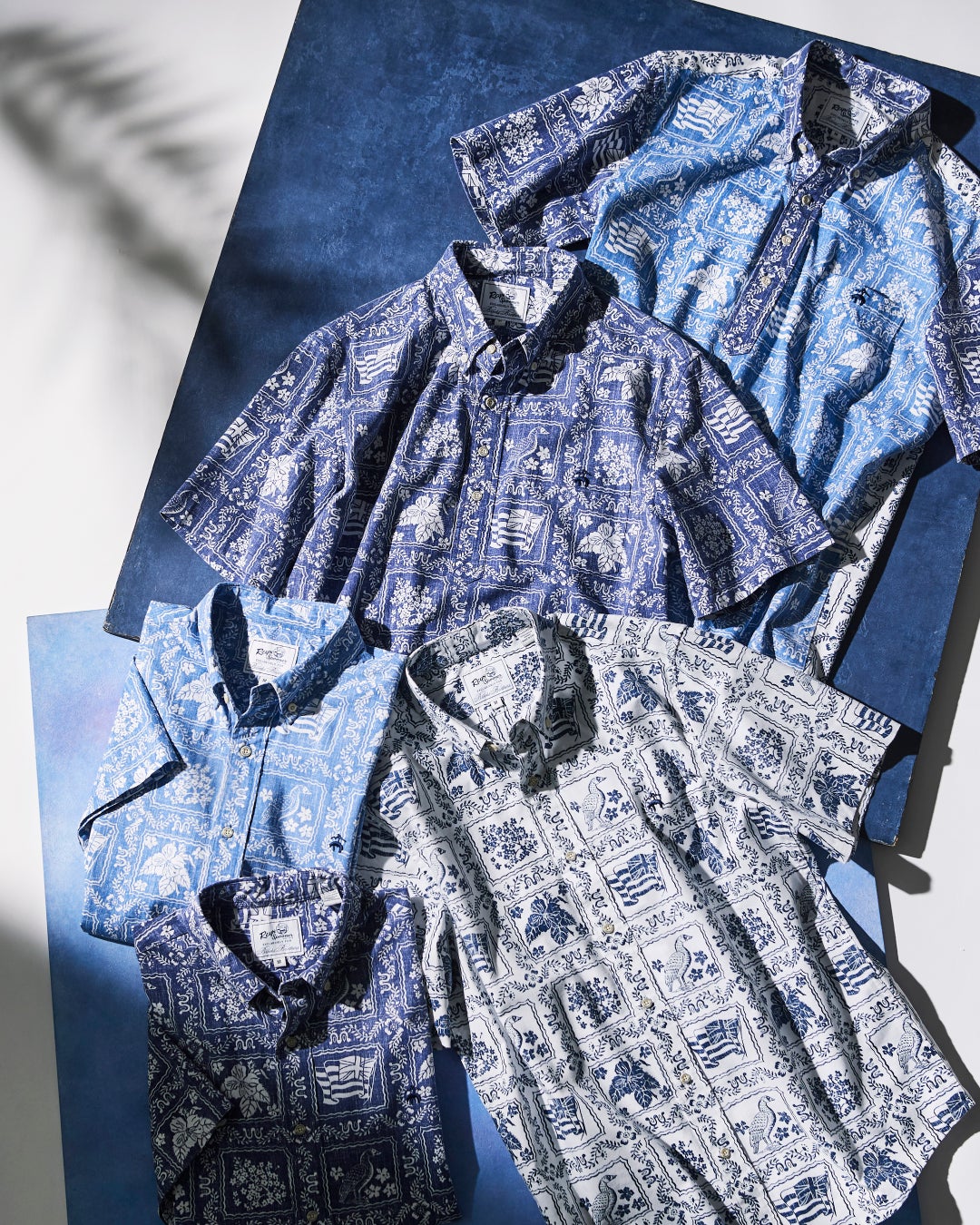 シティリゾートスタイルの定番といえるアロハシャツ。その代表格として古くから愛されるのが、ハワイで約70年の歴史を誇る〈レインスプーナー〉です。そんな名門とコラボレーションしたのがこちら。ハワイの州旗・州花・州鳥・州木を並べたブランドの代表モチーフ「ラハイナセーラー」柄を、爽やかなブルー&ホワイトで表現しました。「スプーナークロス」とよばれるファブリックも同社の代名詞。シワになりにくく丈夫で、サラリとした肌触りを味わえるのも特徴です。裾は通常ストレートカットですが、タックアウトしたときのバランスを考慮してラウンドカットにアレンジ。プルオーバーと前開きシャツの2型を展開し、ブルックス ブラザーズのポロカラーシャツでお馴染みのファンシャツ(異なる生地を切り替えたコンビ柄)も製作しました。