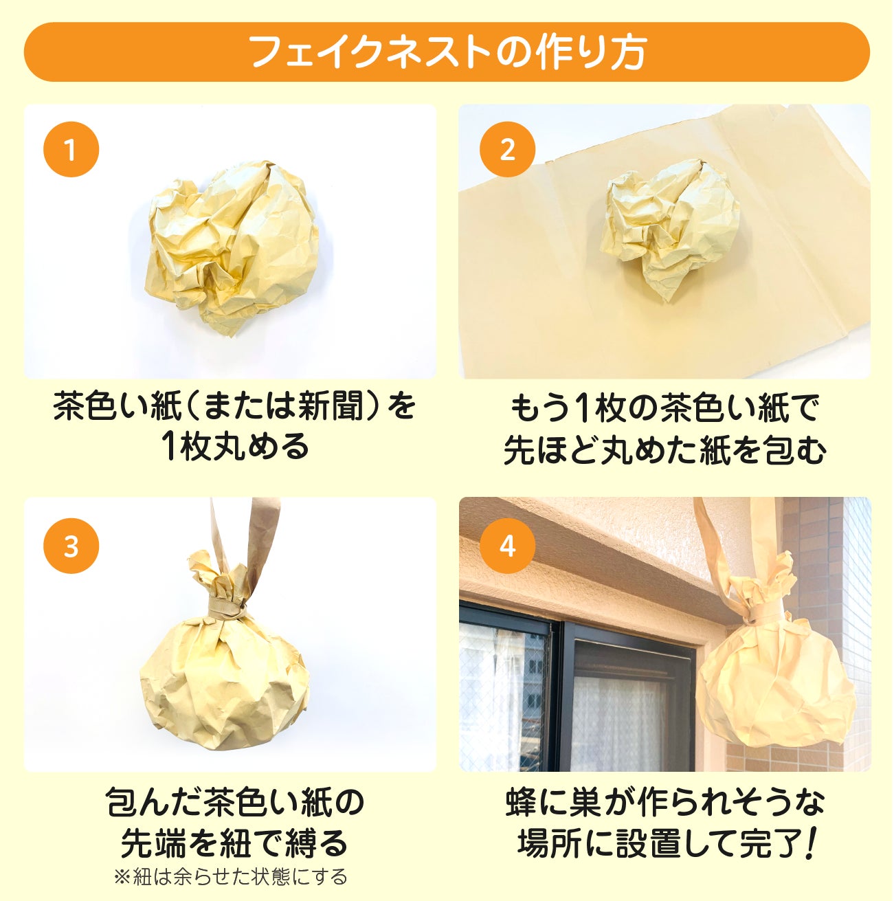 フェイクネストは偽物の蜂の巣のことで、市販のものを購入してもよいですし、ご自身で作ることも可能です。