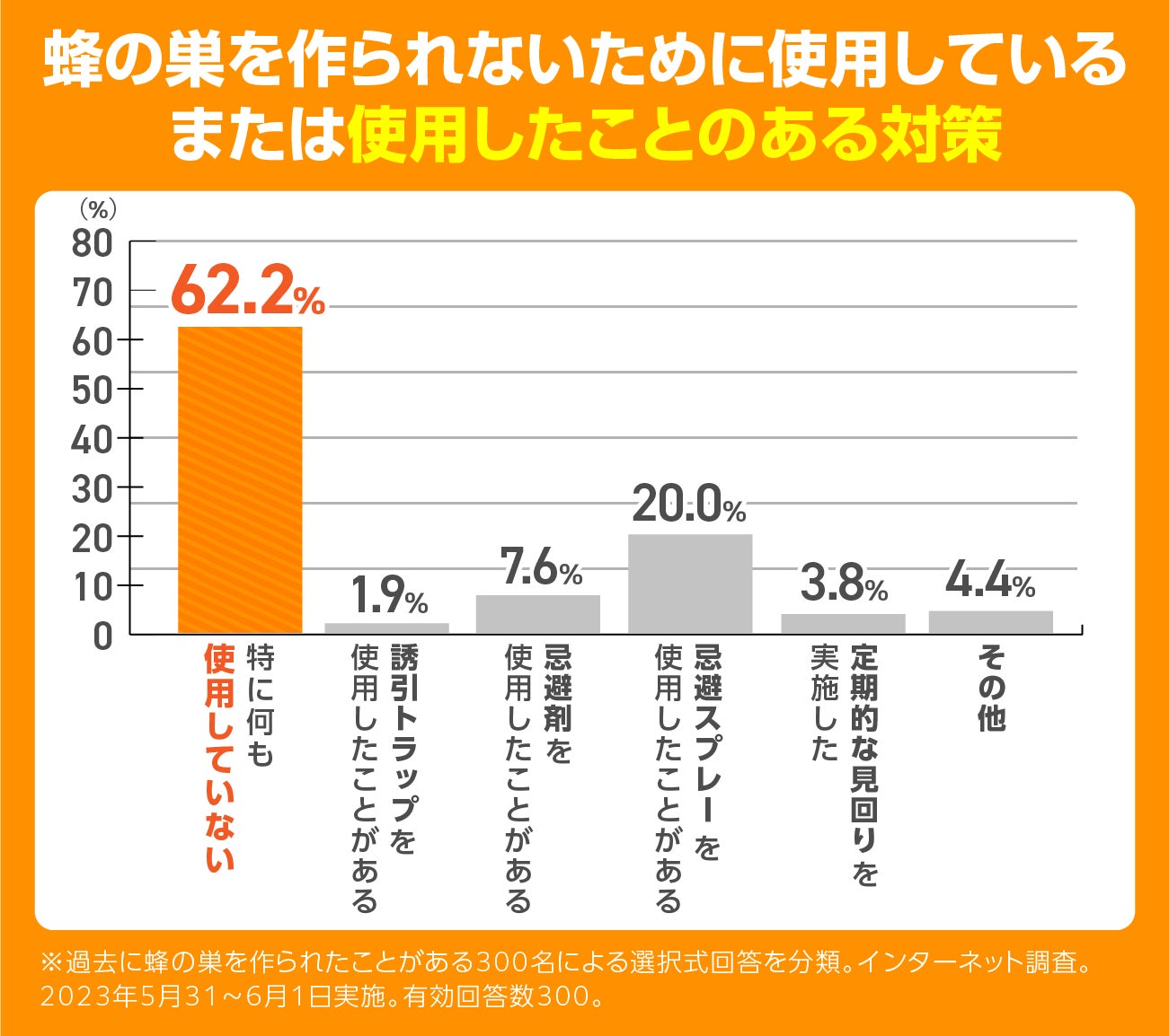 (※過去に蜂の巣を作られたことがある300名による選択式回答。インターネット調査。2023年5月31~6月1日実施。有効回答数171。)