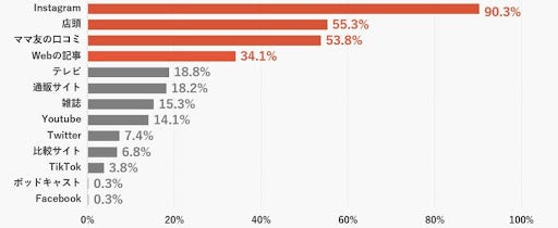 「Instagram」が首位。次いで「店頭」「ママ友の口コミ」となりました。