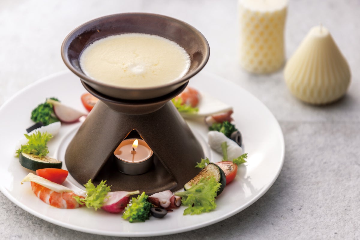 彩り野菜と魚介のチーズフォンデュ