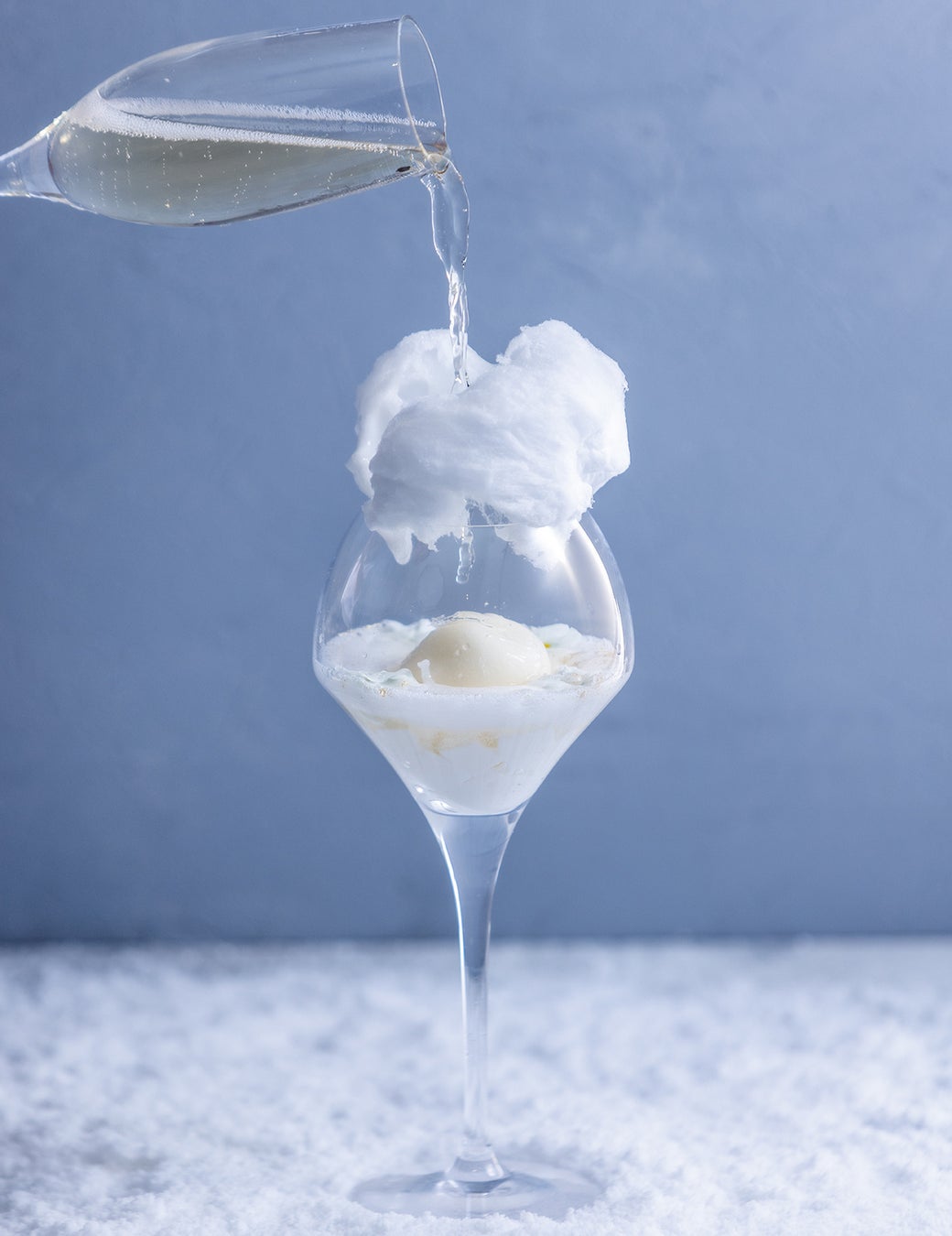甘美な驚きを楽しむ新感覚カクテルが登場!シャンパンを注ぐとふんわりとした綿菓子が溶け、杏仁豆腐や白いアイス大福、エディブルフラワーが彩る特別な一杯に変化します。華やかな彩りとともにリゾートの夜をお楽しみください。