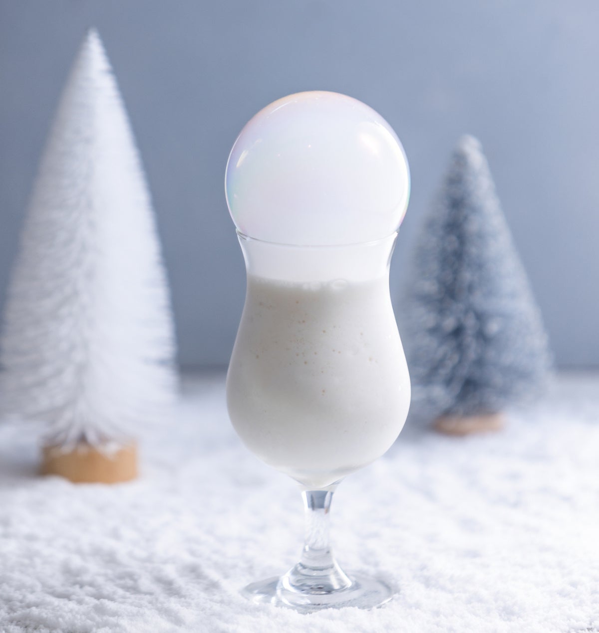チーズケーキリキュールと宮崎発祥の人気ドリンク『ヨーグルッペ』が織りなす白いカクテルに特別な体験をプラス。マイルドな酸味とほどよい甘さのフローズンカクテルに乗せられた白いバブルが弾けると、幻想的なスモークが広がります。