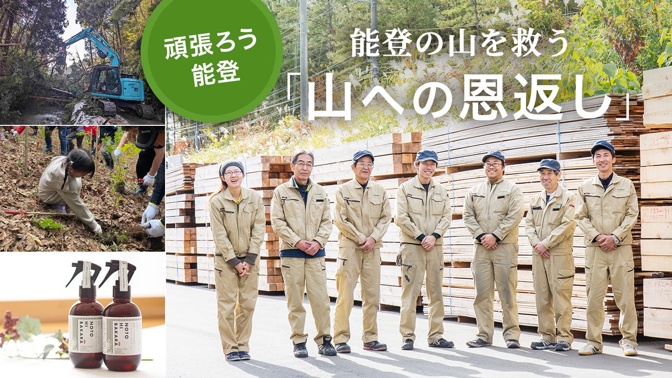 二次災害の危険があるなか能登の倒れた木々を整備し山の復興に取り組む、石川県森林組合連合会への寄付に充てられる、石川の木材会社が立ち上げたプロジェクト。