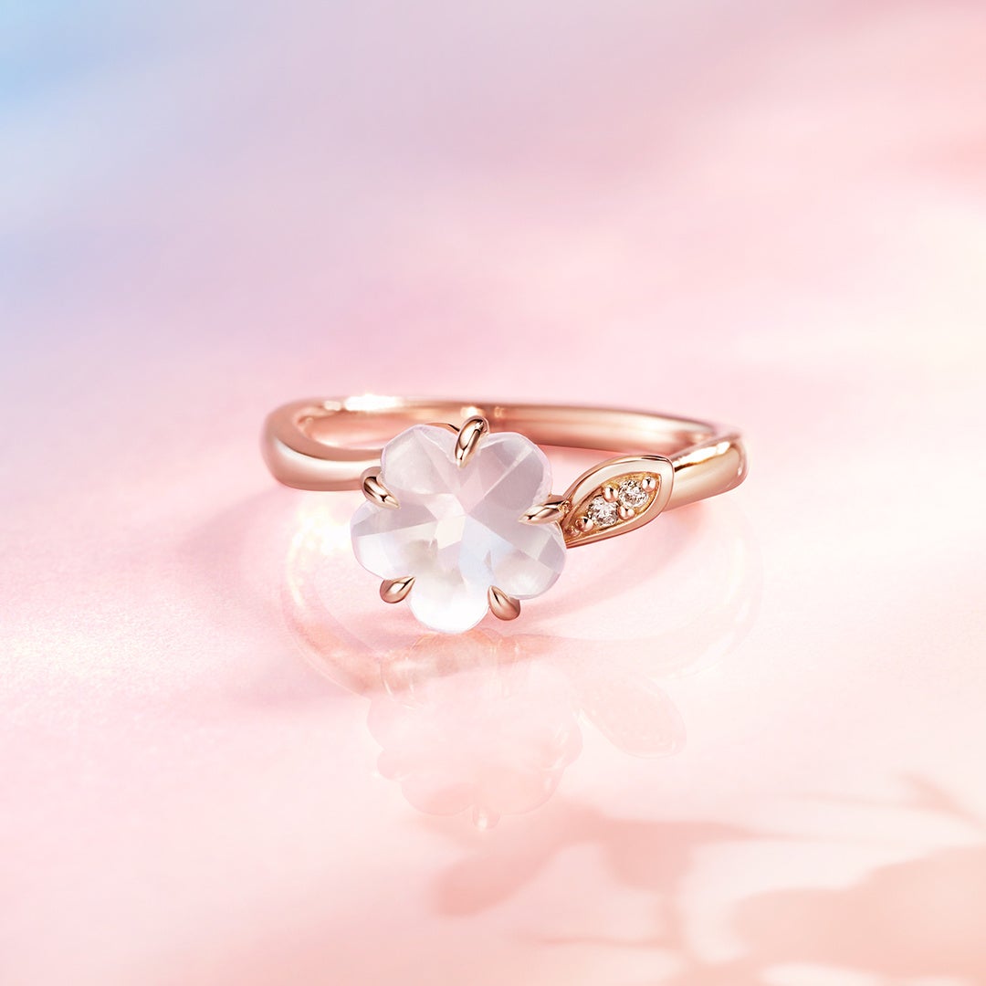 美・愛・優しさの象徴とされるローズクォーツに、4℃オリジナルの桜カットを施したデザイン。天然石の美しさを存分に楽しめるよう、シンプルで洗練されたデザインに仕上げました。ローズクォーツのみずみずしく潤んだ輝きが、あなたの魅力をさらに引き立てます。