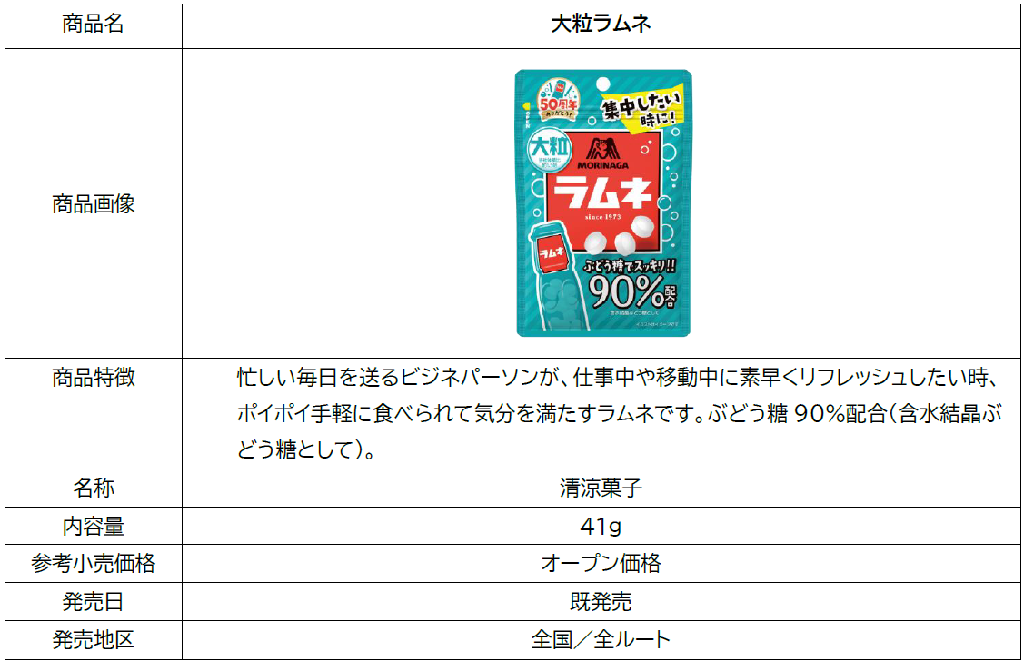 森永製菓株式会社(東京都港区芝、代表取締役社長・太田 栄二郎)は、「森永ラムネ」の発売50周年を記念して、「森永ラムネ」の約3.9倍の大きさの「超大粒ラムネ」を7月25日(火)より新発売いたします。
