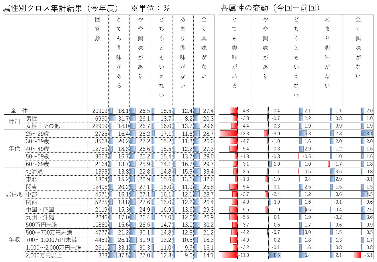 なお属性別には、性別では男性、年収ではより所得の高い方が投資に興味が強く、これらは過去の結果と同様の傾向です。