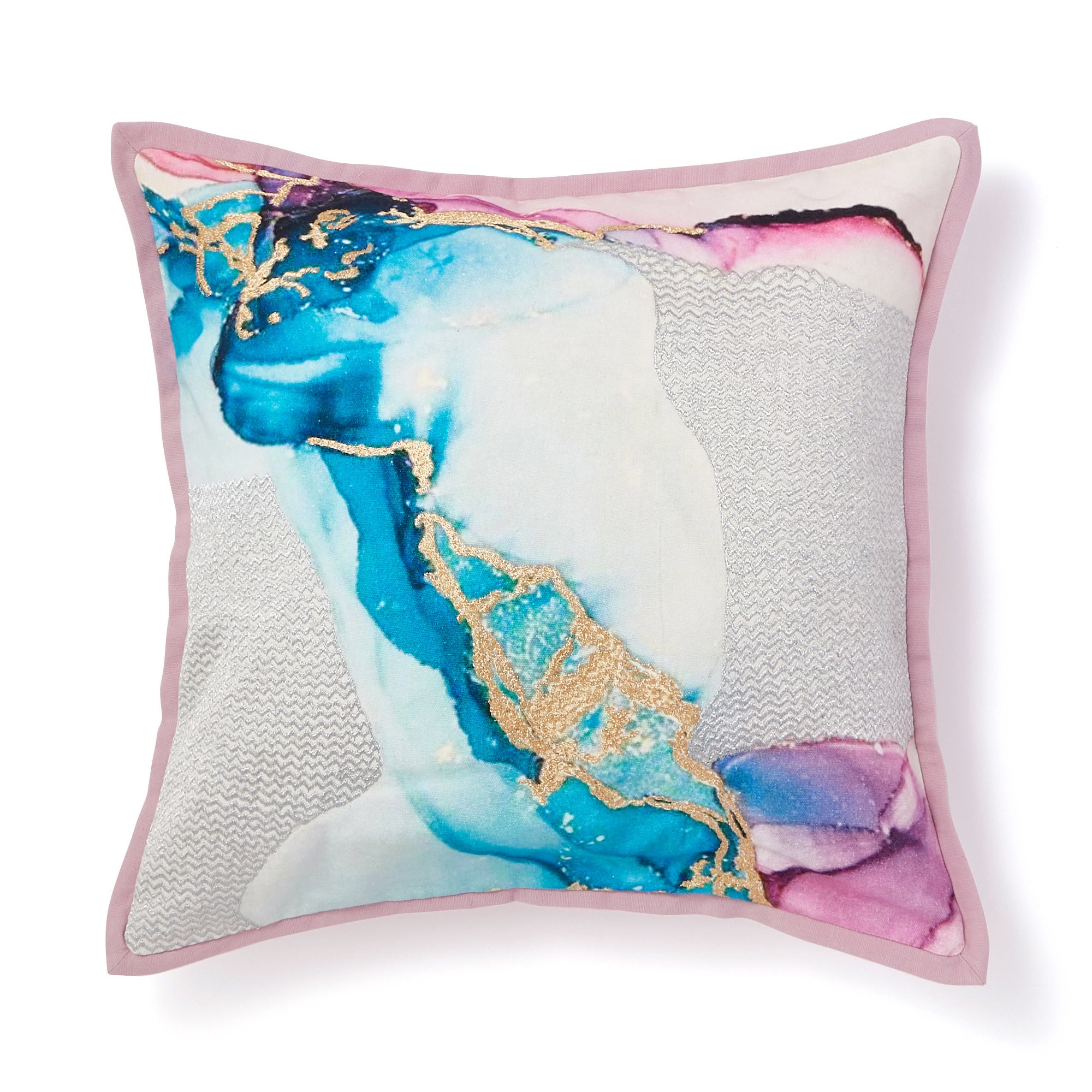 インクの滲みのようなマーブル柄に部分的にメタリック糸で刺繍を施したデザインです。