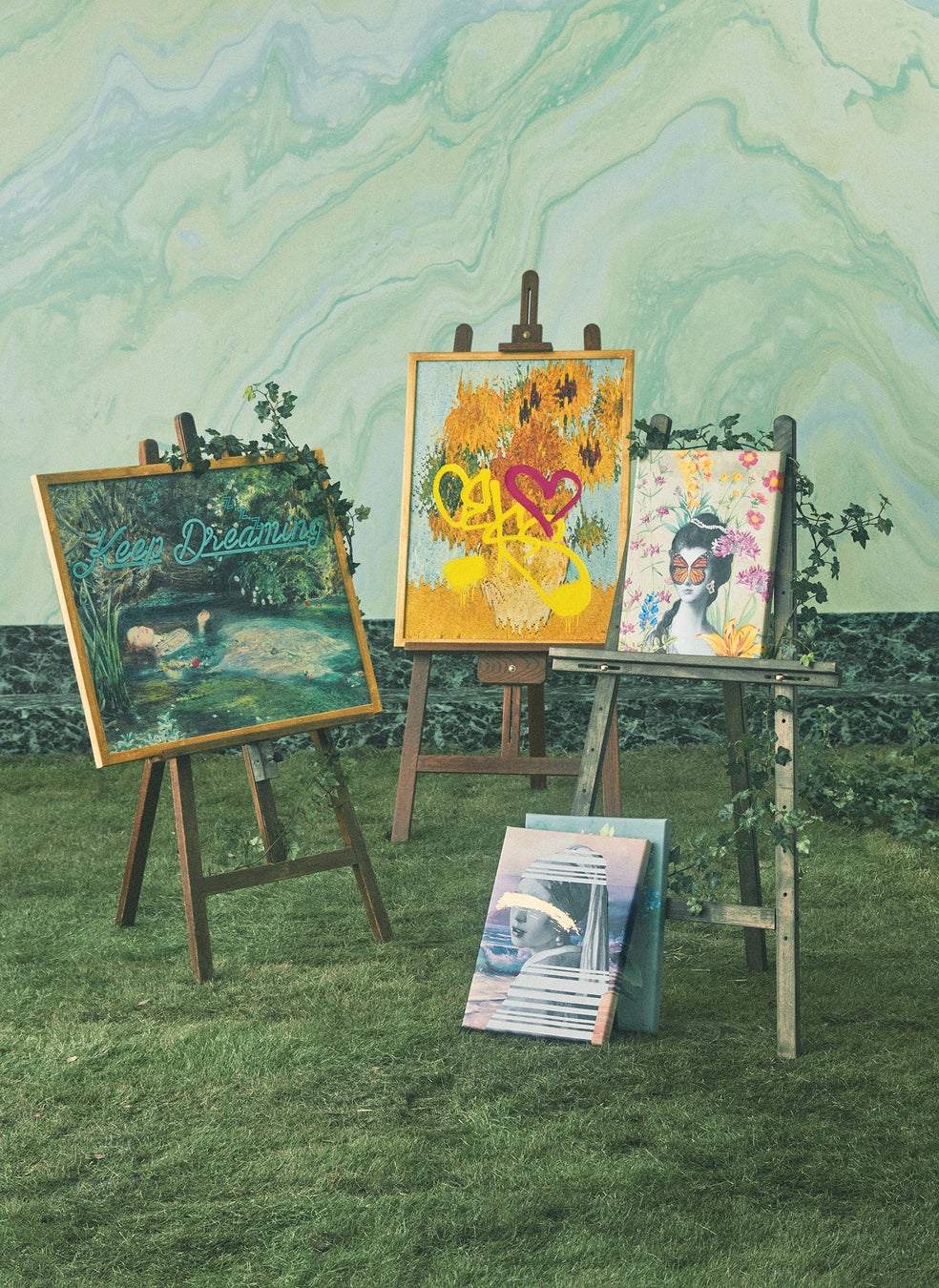 ゴッホの「ひまわり」、ミレーの「オフィーリア」、レオナルド・ダ・ヴィンチの「最後の晩餐」をモチーフに、モダンなデザインに仕上げた存在感抜群のアートボードです。いずれもクラシカルな名画を用いながら、あえてポップなメッセージやグラフィティをプラスすることで、都会的なアートに仕上げました。