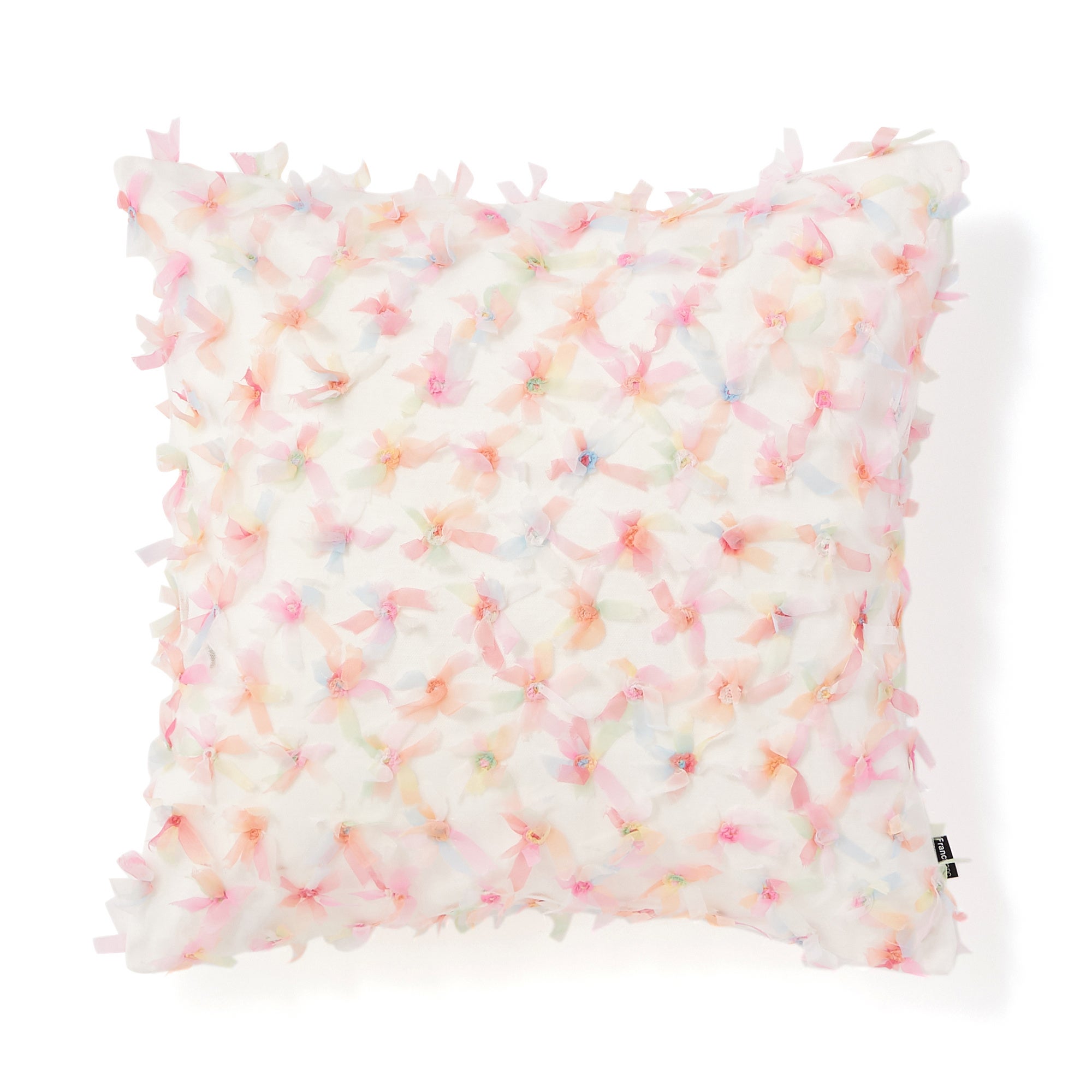 オーガンジー素材のカラフルなリボンを全面に施した華やかなデザインです。